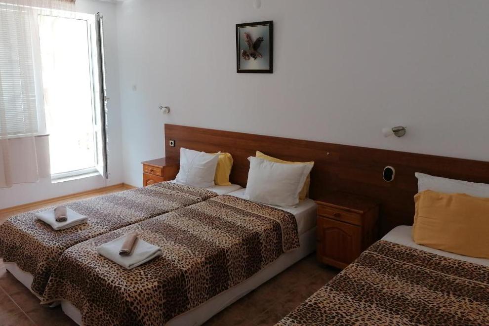 Хотелът разполага с леглова база от 20 места. Стаите са оборудвани с климатик, гардероб, телевизор с плосък екран, електрическа кана, хладилник, собствена баня, спално бельо, хавлии и тераса. Някои стаи имат кухня с фурна, микловълнова печка, котлони.