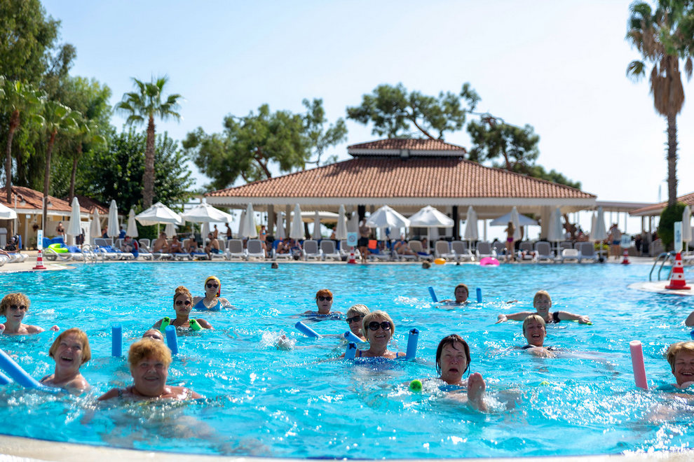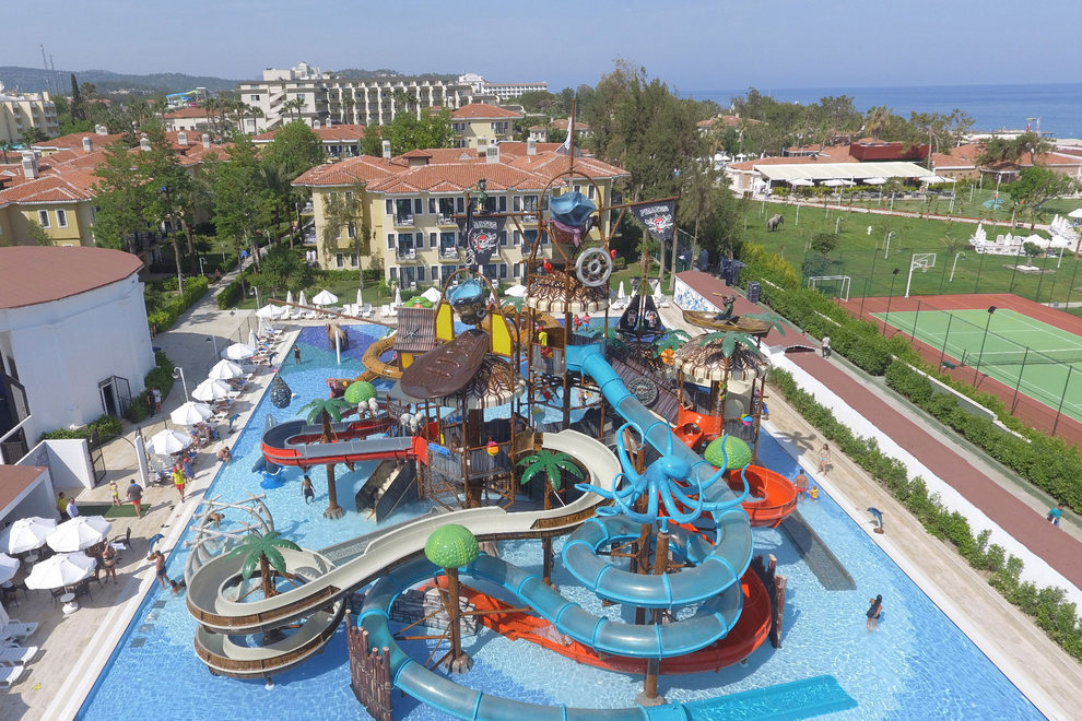 Хотелът има собствен пясъчно-чакълест плаж с кей и 3 открити басейна с водни пързалки. Чадъри, шезлонги, плажни кърпи на плажа и при басейна се ползват безплатно.