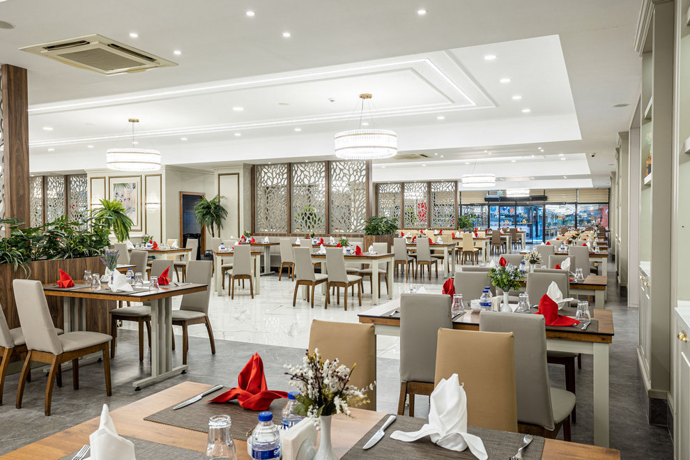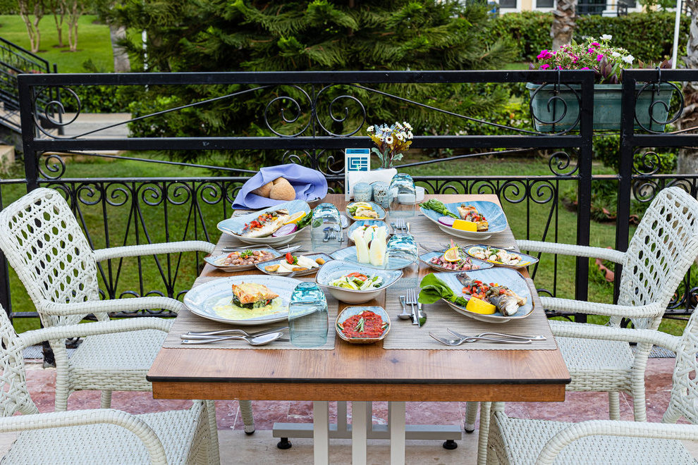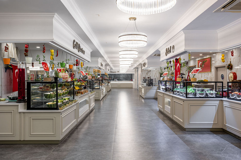 На разположение на гостите има основен ресторант и 3 ала карт ресторанта: турски, морски и итaлиански. Освежаващи напитки и закуски се поднасят в 8 бара и сладкарница.