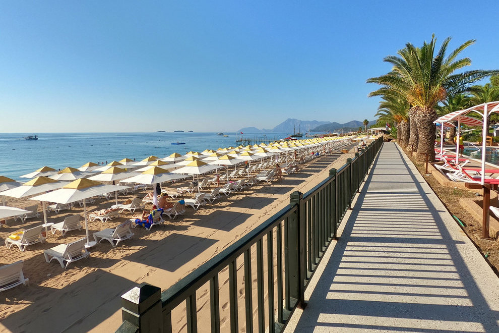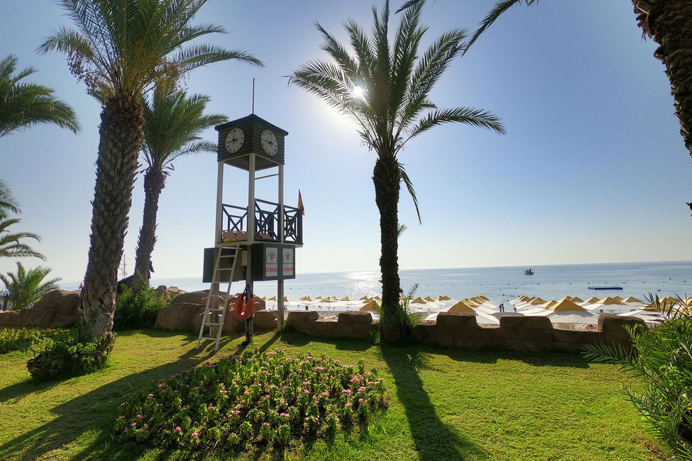 Хотелът има собствен пясъчно-чакълест плаж с кей. Три открити басейна, бар на плажа.