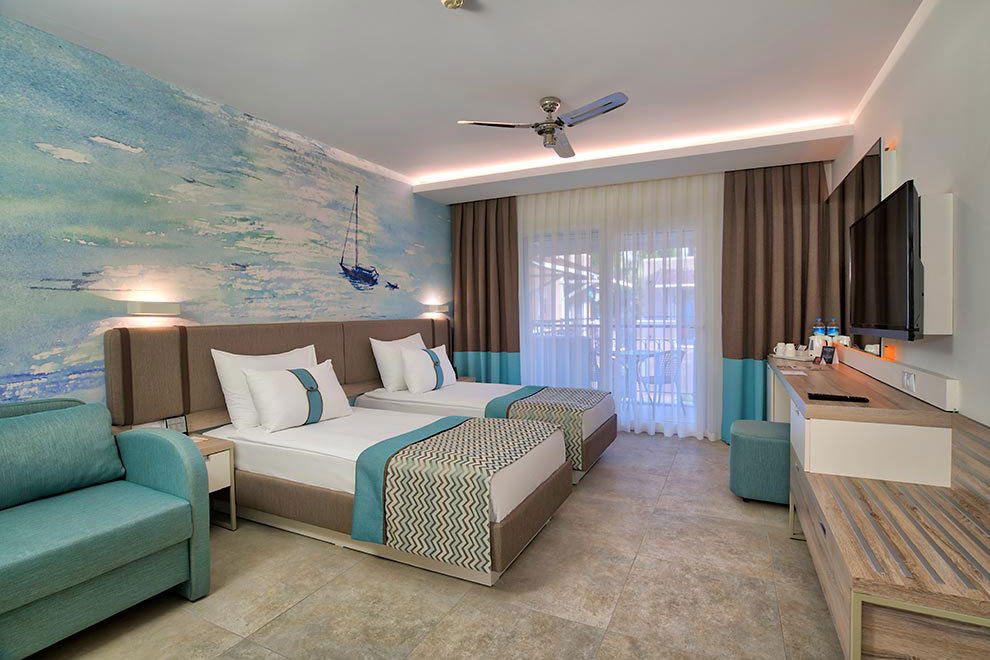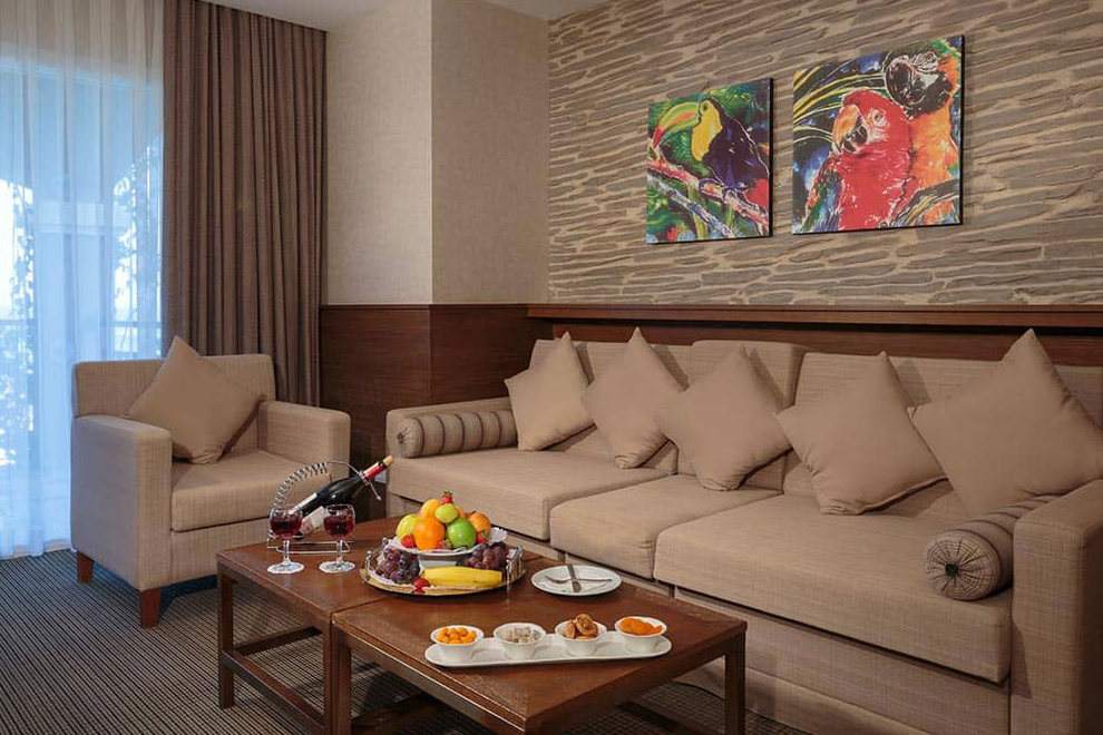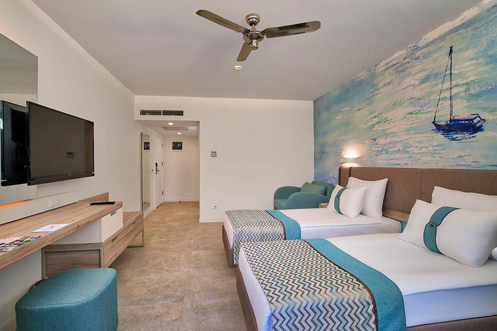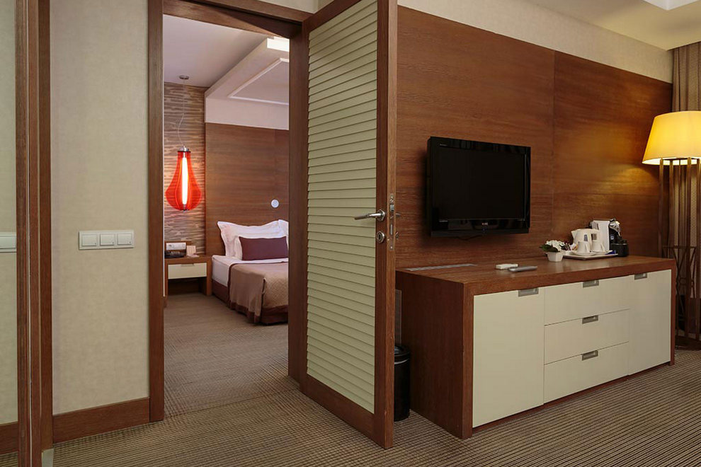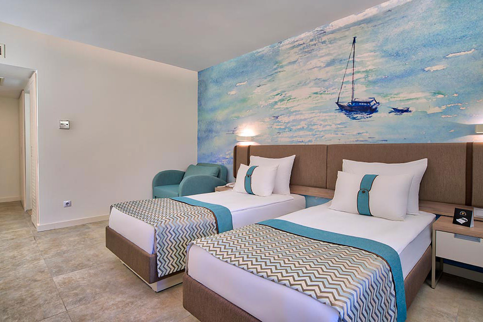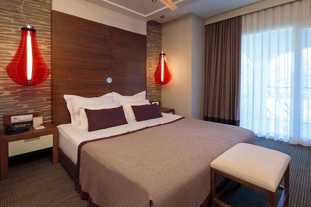 Уютните климатизирани стаи на хотела са оборудвани с телевизор, телефон, минибар, сейф, балкон. в банята има сешоар. Стаите се почистват ежедневно, спалното бельо се сменя три пъти седмично.