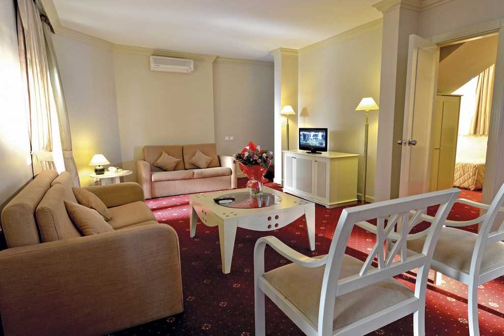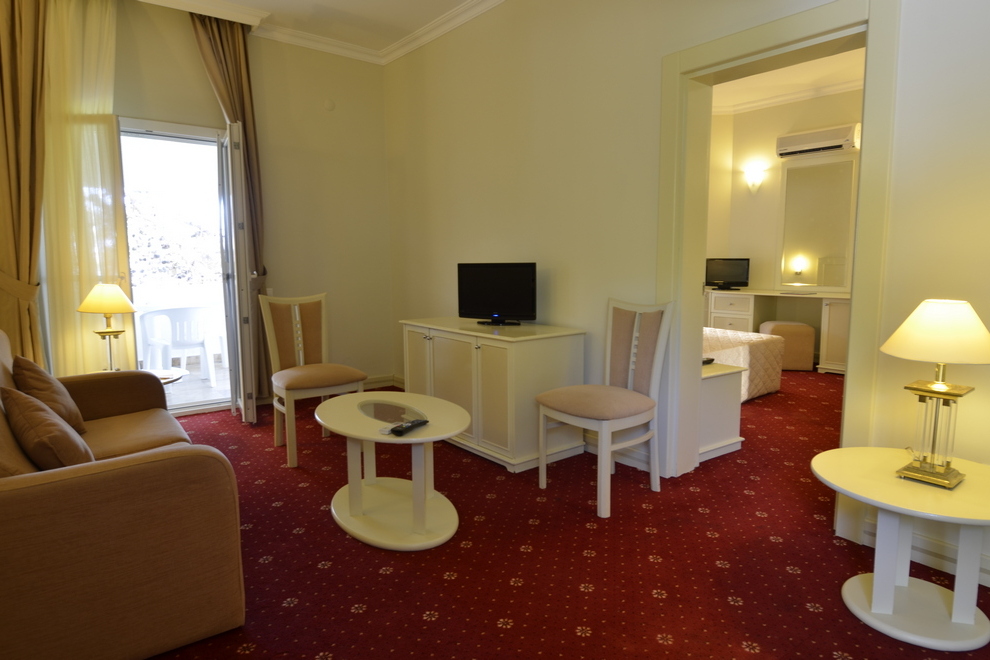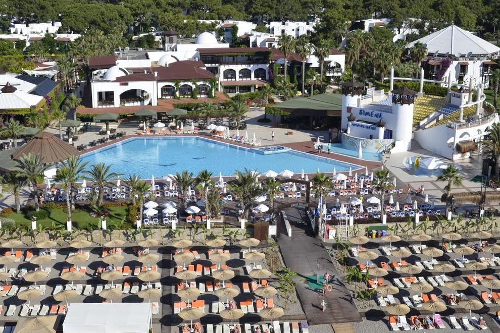 Хотелът се състои от осемдесет и пет 2- и 3-етажни бунгала и Select, в които са разпределени 350 standard room (включително 4 стаи за инвалиди, макс 3 чов, 23 кв.м); 70 двустайни family room (две спални с врата, макс 4 чов, 27 кв.м); 17 тристайни suite room (хол, две спални с врата, макс 5 чов., 56 кв.м); 4 duplex suite на две нива (1-во ниво: хол, спалня с врата, душ, второ ниво: две спални с врати, баня с джакузи (с изключение на 1 стая)., макс 7 чов., 117 кв.м). Select: 4 тристайни Simena Select Flat (хол, кухня, 2 спални, 2 бани, тераса или балкон, макс 7 чов., 105 кв.м, VIP услуги.); 4 двуетажни Simena Select Villa (на 1-ви етаж: хол, трапезария, кухня, баня, хамак на терасата; на 2-ри етаж: 3 спални, едната с изглед към морето, 2 бани, джакузи на балкона, макс 8 чов., 220 кв.м, VIP услуги.); 1 двуетажна Presidential Villa (на 1-ви етаж: стая за персонала, баня, два хола, трапезария, кухня, хол; на отделен етаж (сутерен): басейн, сауна, турска баня, джакузи, на 2-ри етаж: 6 спални, всяка баня с джакузи и балкон (3 спални с изглед към морето), работен кабинет с необходимото оборудване: телефон, безжичен интернет, компютър, факс, принтер, макс 10 чов., 1600 кв.м, VIP услуги). Стаите са оборудвани с индивидуален климатик, телевизор, телефон, минибар (вода, безалкохолни напитки, бира - безплатно, зарежда се всеки ден), сет за чай/кафе, сейф (безплатно), баня, сешоар, под - мокет, балкон или тераса, почистване на стаята - ежедневно, смяна на спално бельо - 3 пъти седмично.