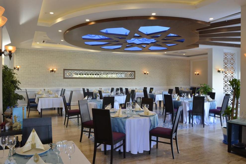 На разположение на гостите са основен ресторант, в който се предлага и диетична храна, 5 ресторанта а`ла карт: турски, рибен, италиански (с предварителна резервация, за едноседмичен престой посещението на един ресторант - безплатно; суши - с предварителна резервация - платено), стек ресторант. Освежаващи напитки и закуски се поднасят в 8 бара (1 от тях платен).