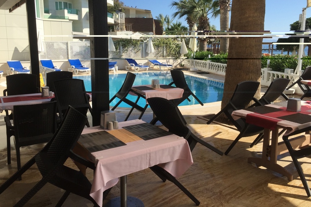 Хотелът разполага с основен ресторант и бар при басейна. All Inclusive концепцията включва закуска, обяд, вечеря на шведска маса, следобедна закуска, алкохолни и безалкохолни напитки, местно производство, без лимит (съгласно концепцията на хотела). Напитки срещу допълнително заплащане: вносен алкохол, енергийни напитки, прясно изцедени сокове, турско кафе и бутилирани напитки.