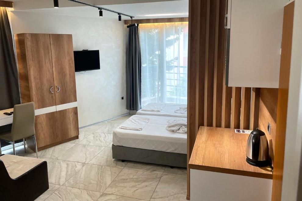 Стаите на хотел Палма са просторни, удобни, напълно оборудвани и модерно обзаведени. Всяка стая е с индивидуален климатик, баня, WC, кабелна телевизия, телефон, мини бар и балкон с маса и столове. Разполагаме с двойни стаи – максимално настаняване 2+1, тройни стаи с максимално настаняване 3+1, както и апартаменти с възможност за настаняване 4+1.
