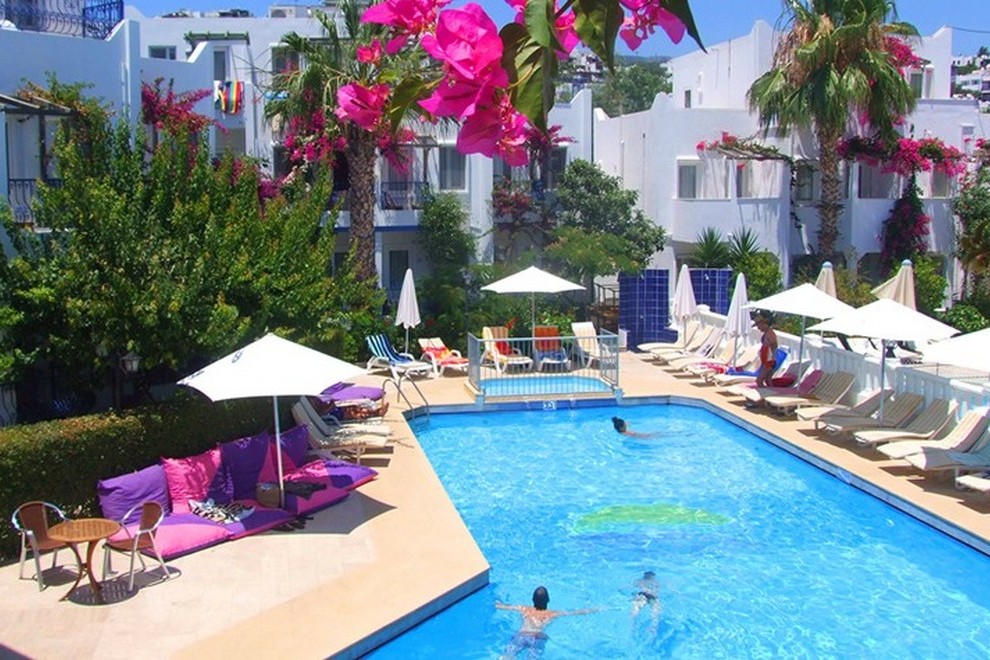 Плажът Gumbet Beach Златист пясък се намира на 100 метра от хотела, който предлага и открит басейн.