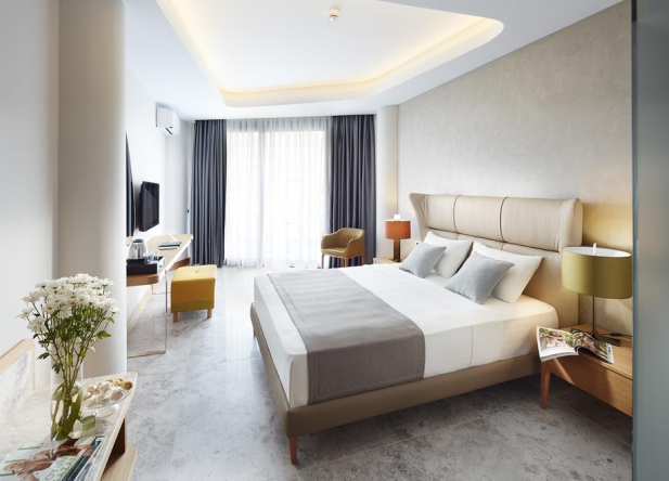 Хотелът приема гостите си в 150 стаи, проектирани с отличителния средиземноморски вкус, изискани детайли и най-новите технологии. Всяка стая е елегантно проектирана, с изглед към града или басейна и има телефон, сателитни телевизионни канали, телевизор с плосък екран, сейф, климатик, отопление, гардероб, душ, сешоар, чехли, мини-бар, чайник, събуждане , Wi-Fi интернет е наличен във всички стаи.