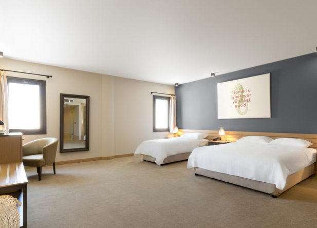 Хотелът предлага стилни интериори и елегантно обзаведени стаи, които са разпределени в няколко сгради. Всяка стая е оборудвана удобно и се различава само по отношение на гледката и достъпността на балкона. Стандартните стаи с площ от 25-30 м² са с мокет и климатик. Всички стаи разполагат с балкон, френски балкон или тераса и са оборудвани с мини-бар (срещу допълнително заплащане), кафе, LCD телевизор (национални и международни канали), сейф и телефон. В баните на всички стаи се предлагат специални съоръжения за баня, сешоар, грим, чехли и халати.