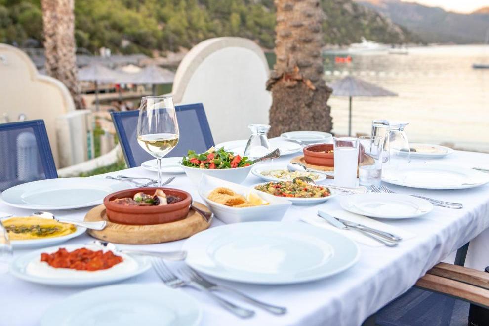 Хотелът има основен ресторант с гледка към Егейско море и планините. Има също 4 а`ла карт ресторанта: Merhaba - турска и средиземноморска кухня; Muhit - турски ресторант (традиционна таверна и международна кухня); Lavanta restourant и Grill Gardеn. Всички а`ла карт ресторанти са платени, 1 безплатно посещение при престой над 5 нощувки. В 5-те бара се предлагат разнообразни напитки. Ultra All Inclusive концепцията включва закуска, обяд, вечеря и междинни хранения на шведска маса, алкохолни и безалкохолни напитки местно производство - без лимит (24-часов бар).
