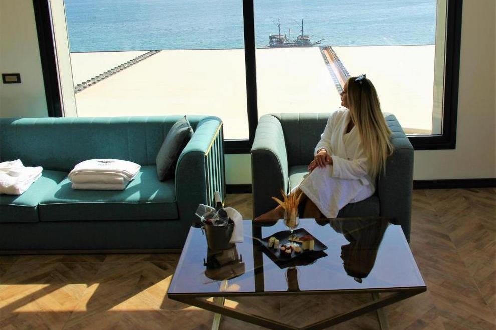 Хотелът разполага с частен плаж с кей и предлага удобството на сезонен открит басейн и тераса за слънчеви бани.
