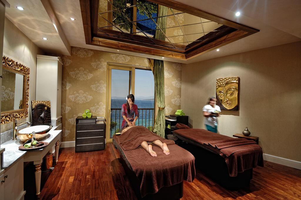 The Bodrum Royal Palace Hotel разполага с голяма собствена плажна зона в залива Торба в Бодрум и предлага открит и закрит басейн, тераса за слънчеви бани.