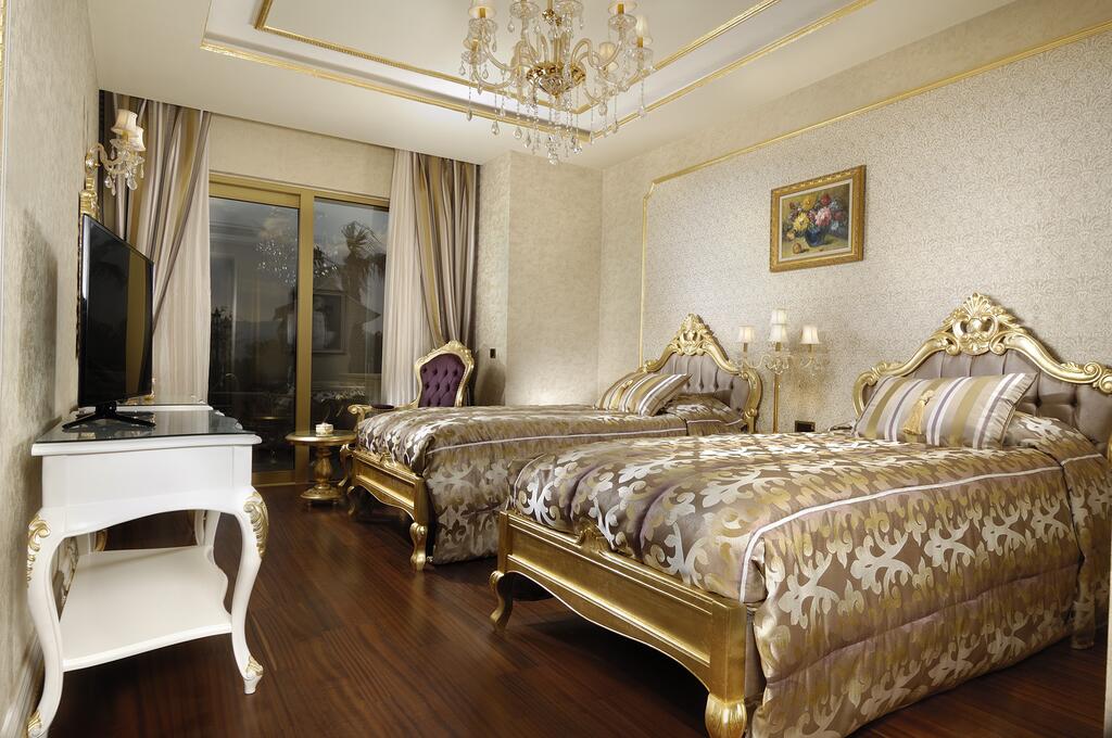 Елегантно обзаведените и климатизирани помещения за настаняване в хотел The Bodrum Royal Palace имат балкон с морски изглед и кът за сядане. Разполагат и със сателитна телевизия, DVD плейър и минибар. Във всяка стая е осигурен сейф. Някои стаи разполагат с iPad.