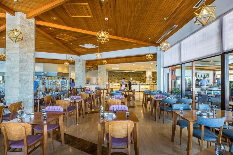 Гостите могат да се насладят както на местни, така и на международни ястия с най-свежите съставки. Снек бар на плажа, който предлага свежи напитки и вкусни закуски. В баровете на комплекса гостите могат да се насладят на коктейли и други напитки, с гледка към Егейско море.