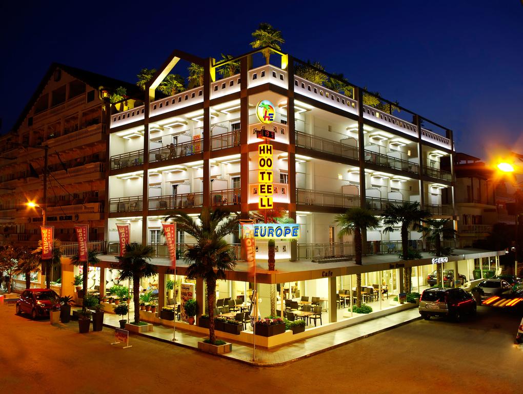 Описание Местоположение: Europe Hotel се намира в Паралия Катерини. Хотелът е реновиран през 2007 г. и се състои от една четириетажна сграда, разположена само на няколко крачки от плажа. Удобни и просторни стаи, ресторант, бар, плувен басейн на покрива, интернет достъп, рум-сервиз. Подходящ за комфортен семеен отдих. Настаняване: Europe Hotel разполага общо 36 стаи: двойни стаи - 24 кв.м и фамилни стаи с 2 двойни спални и 2 бани - 48 кв.м. Във всички стаите са на разположение: климатик, безплатен Wi-Fi интернет, сателитна телевизия, хладилник, сейф (безплатно), душ, сешоар, балкон. Храна и напитки: Europe Hotel разполага с бар и ресторант, които работи а ла карт (на обяд). Хотелът предлага закуска и вечеря. Удобства и забавления: Europe Hotel предлага басейн на покрива на хотела, безплатен wi-fi в общите части, сейф в стаите – безплатно. Ежедневно почистване на стаите, смяна на спалното бельо - на всеки 3 дни. Плаж: Europe Hotel се намира на 100 м до самия пясъчен плаж. Чадърите и шезлонгите на плажа се заплащат.