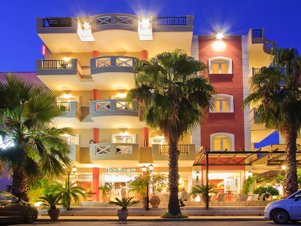 Описание Местоположение: Evdion Hotel е малък уютен хотел, на Олимпийската ривиера в близост до пясъчен плаж. Намира се на 300 м от центъра на курортно селище Неи Пори, на 28 км от град Катерини. Хотелът е разположен на втора линия и се състои от четириетажна сграда. Просторни стаи, с всички съвременни удобства, ресторант, барове, басейн, интернет достъп, висококачествено обслужване. В близост до хотела се намират много магазини, барове, традиционни гръцки таверни. Идеален за комфортна икономична почивка. Настаняване: Evdion Hotel разполага с общо 30 стаи: Двойни стаи - 20-25 кв.м, Фамилни стаи - 45 кв.м . В стаите са на разположение: климатик , сателитна телевизия, телефон, безплатен Wi - Fi достъп до интернет , мини - бар (по заявка - срещу заплащане), хладилник, душ , сешоар , сейф ( срещу заплащане) , балкон / тераса . Фамилните стая разполага с две стаи. Всекидневна с двоен разтегателен диван и отделна спалня с две единични легла, 2 климатика, 2 дрешника , 2 телевизора , голям балкон. Възможно настаняване 4-ма възрастни . Тип допълнително легло - разтегателен фотъоил или легло. Храна и напитки: Evdion Hotel разполага с 2 бара (основен и до басейна) и 1 ресторант, който на обяд работи като а ла карт (италианска кухня). Хотелът предлага полупансион (закуска и вечеря - бюфет). Удобства и забавления: Evdion Hotel предлага басейн с прясна вода ( общ басейн с хотел Evilion Stilvi) безплатен wi-fi в общите части, сейф в стаите - срещу заплащане. Настаняване с домашни любимци по заявка. Ежедневно почистване на стаите, смяна на спално бельо и кърпи - 2 пъти седмично. Плаж: Evdion Hotel се намира на 80 м от пясъчен плаж. Чадърите и шезлонгите на плажа се заплащат.