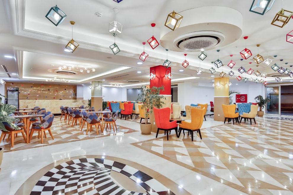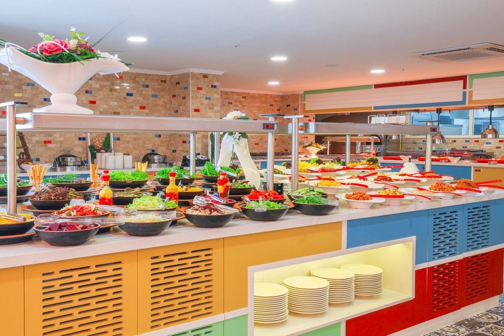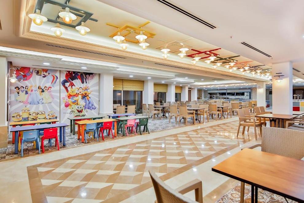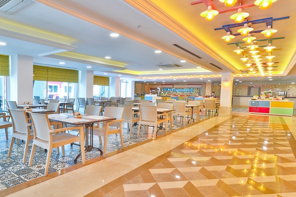 На разположение на гостите са основен ресторант и 2 а`ла карт ресторанта: турски и рибен (платен). Има също ресторант на плажа, павилион за гьозлеме и сладкарница. Разнообразни напитки се предлагат в 4 бара.