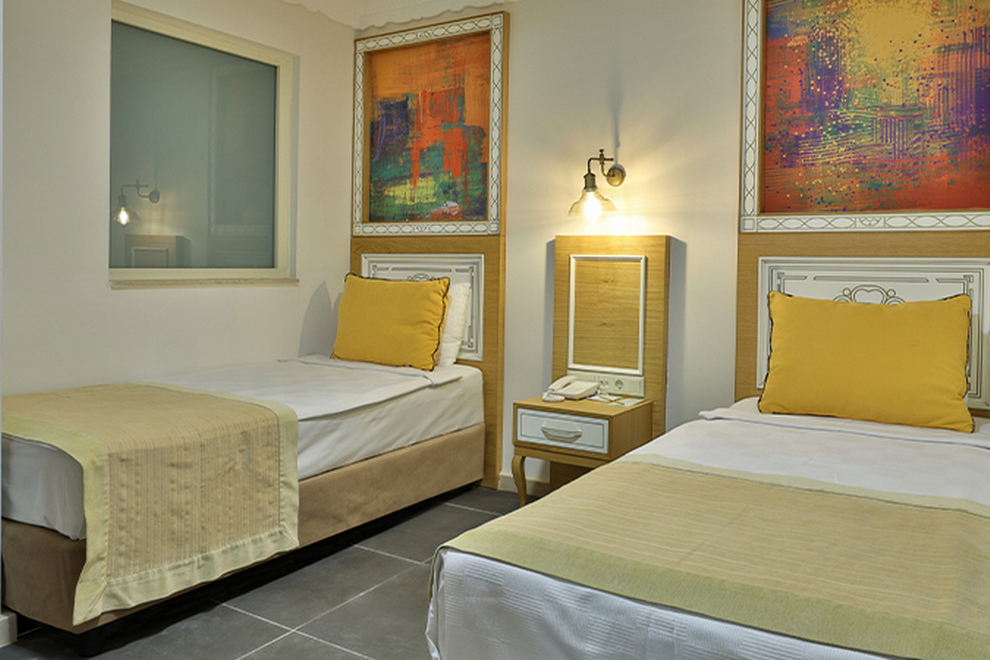 Всички стаи разполагат с балкон, керамичен под, интелигентна система за заключване на врати с карта, индивидуално регулируем сплит климатик, сателитна LED телевизия с музикално предаване, минибар, електрическа кана, комплект за чай и кафе, сейф, подходящ за лаптоп, телефон с директно избиране, безжична интернет връзка, пожароизвестителна и пожарогасителна система. Банята е с душ, телефон, бойлер и сешоар.