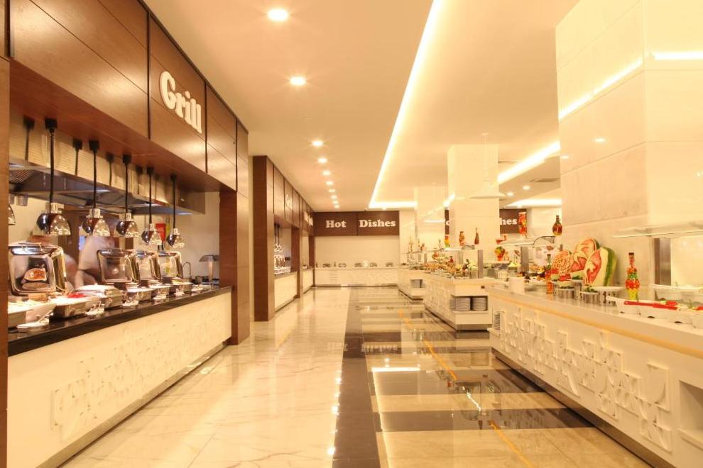Хотелът разполага с основен ресторант (предлага се и диетично меню), а`ла карт 4 ресторанта: турски, италиански, рибен - с предварително записване, за 7 нощувки се полага безплатно 1 посещение); стек хаус - (срещу допълнително заплащане), има и 5 бара.