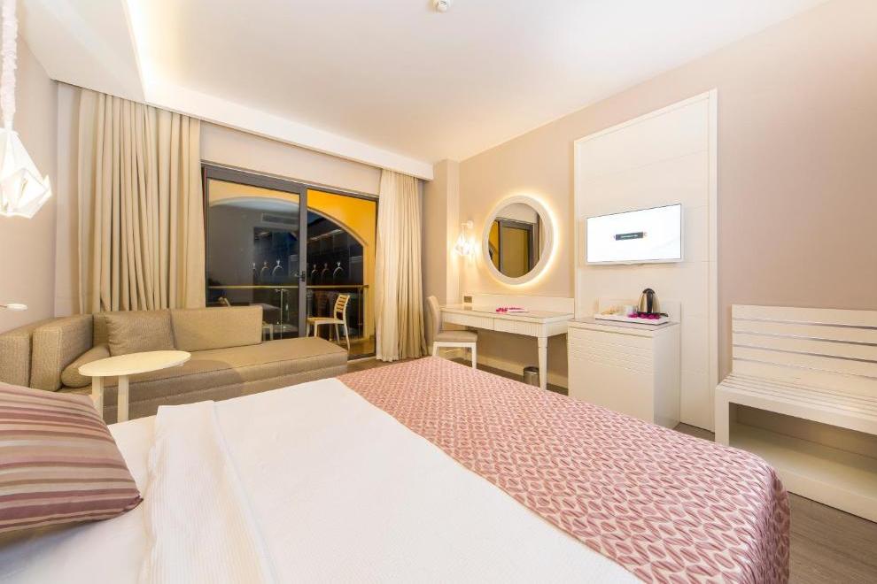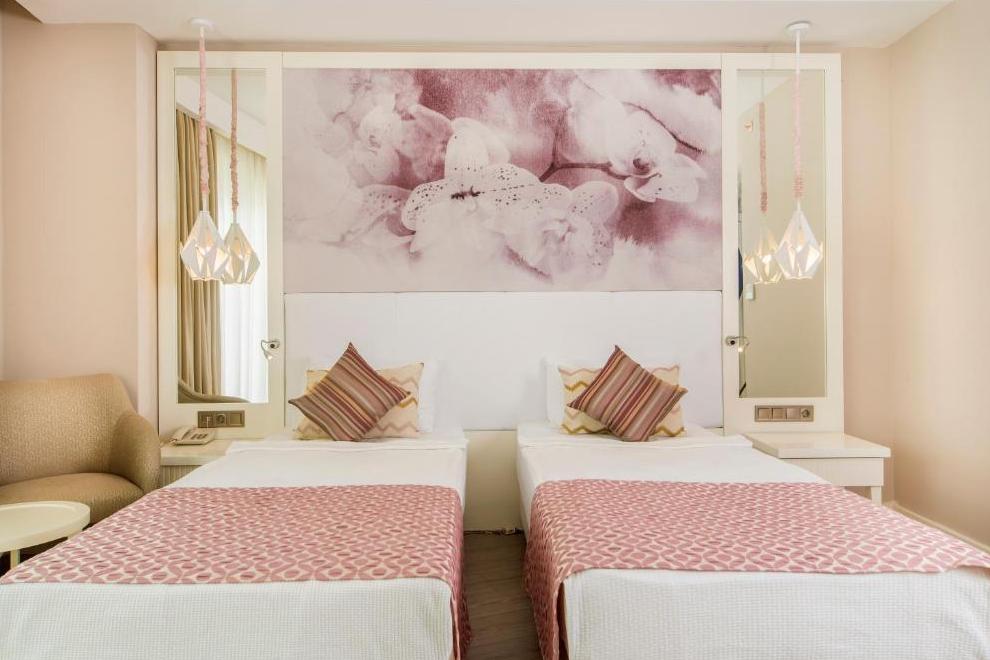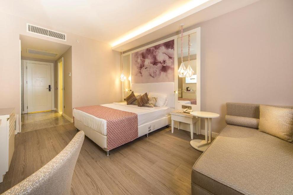 Хотелът посреща гостите си в една 8-етажна сграда (има асансьори), в която са разпределени 272 климатизирани стаи: Standart double (32,5 кв.м), Standart swim up (32,5 кв.м) и Family (65 кв.м). Family Room се състоят от две отделни спални помещения, като всяко е оборудвано със самостоятелна баня. Стаите са оборудвани със сателитна телевизия, телефон с директно избиране, сет за кафе и чай, минибар (ежедневно зареждане с разхладителни напитки), чехли, сейф, баня с душ/вана, сешоар, балкон, Wi-Fi. Стаите се почистват всеки ден, спалното бельо се сменя 3 пъти седмично.