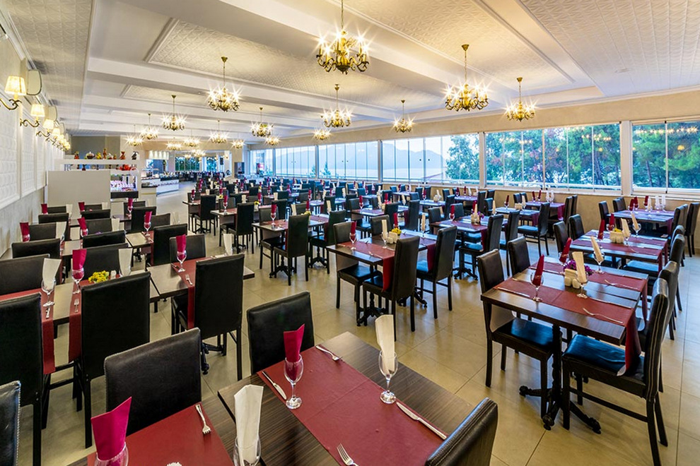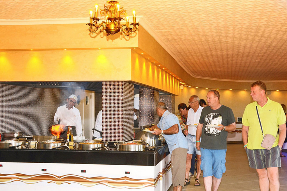 Хотелът има 1 основен ресторант и 2 бара. Концепция All Inclusive – всичко е включено в цената. Закуска, обяд, вечеря, междинни хранения на блок маса, местни алкохолни и безалкохолни напитки без лимит.