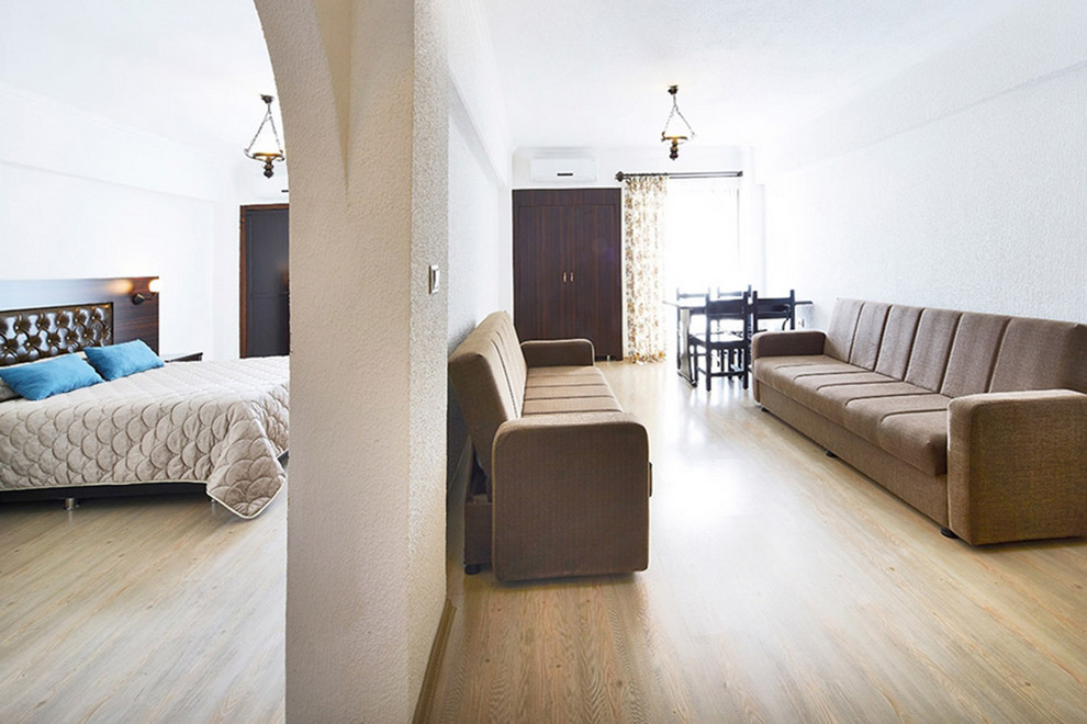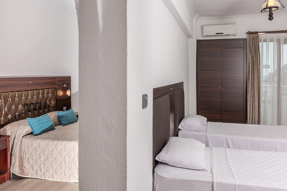 Хотелът разполага със стандартни и фамилни стаи, оборудвани с индивидуален климатик, сателитна TV, мини бар, сейф, баня с душ, сешоар, балкон. Стаите се почистват всеки ден, спалното бельо се сменя два пъти седмично.