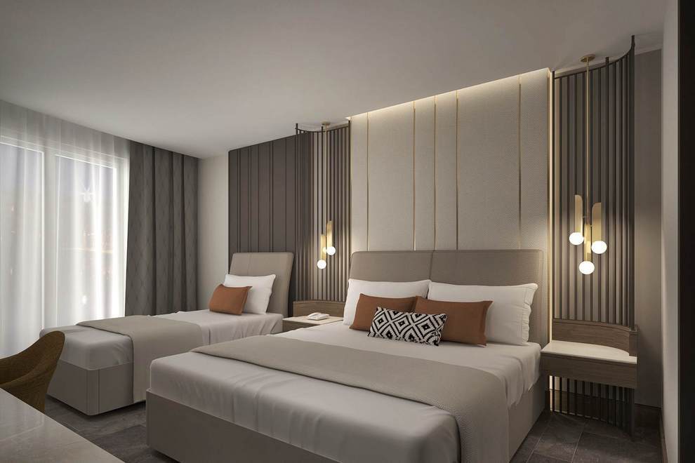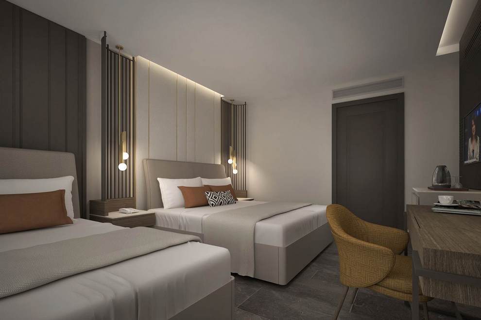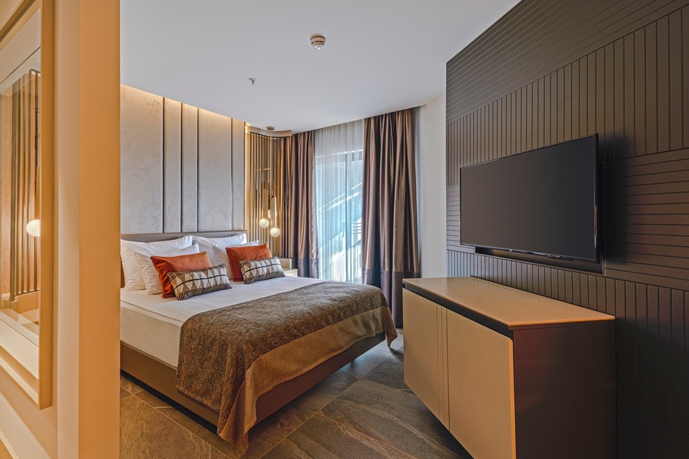 Хотелът с състои от една 7-етажна сграда (6 асансьора), в която са разпределени 420 климатизирани стаи: Standard Room (30 кв.м), Junior Suite (30 кв.м), Family Room (44 кв.м), Deluxe Family Room (63 кв.м). Саите са оборудвани с телевизор, телефон, минибар, сейф, кът за сядане, баня с душ, сешоар, безплатни тоалетни принадлежности, халат, чехли, балкон, Wi-Fi. Ежедневно почистване на стаите, смяна на спалното бельо - 3 пъти седмично.