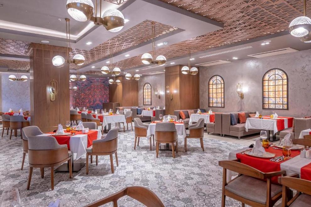 На разположение на гостите са ресторант и два а`ла карт ресторанта: средиземноморски и турски. Освежаващи напитки и закуски се поднасят в лоби бар, бар на плажа, бар при басейна, Snack Bar, H2O Bar и Disco Bar.