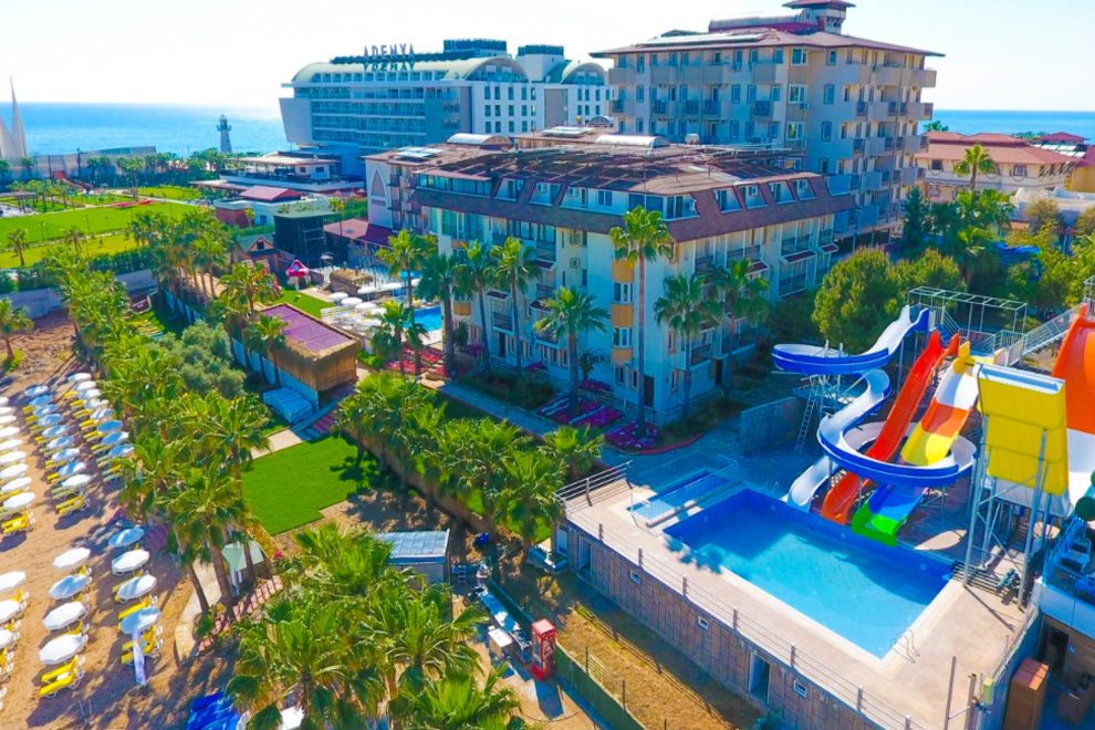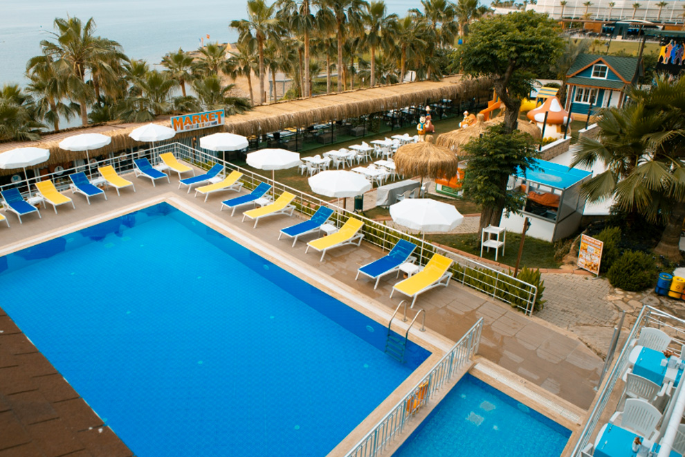 Хотелът се намира на брега на морето на 3 км от Турклер. Алания се намира на 22 км, а летище Анталия на 98 км. Хотелът е построен през 1990 година, последно реновиран през 2018 година.