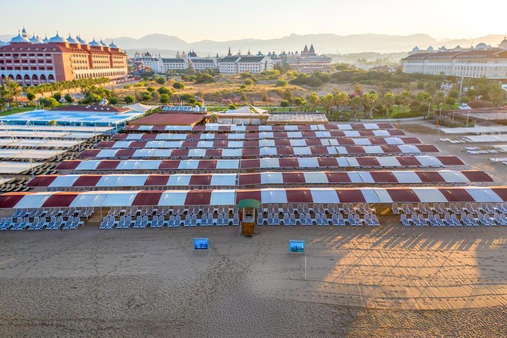 Хотелът разполага със собствен пясъчен плаж на 250 м. Има безплатен шатъл до плажа. на разположение на гостите има открит и закрит басейн, 4 водни пързалки. На плажа и при басейна чадъри, шезлонги и хавлии се предоставят безплатно.