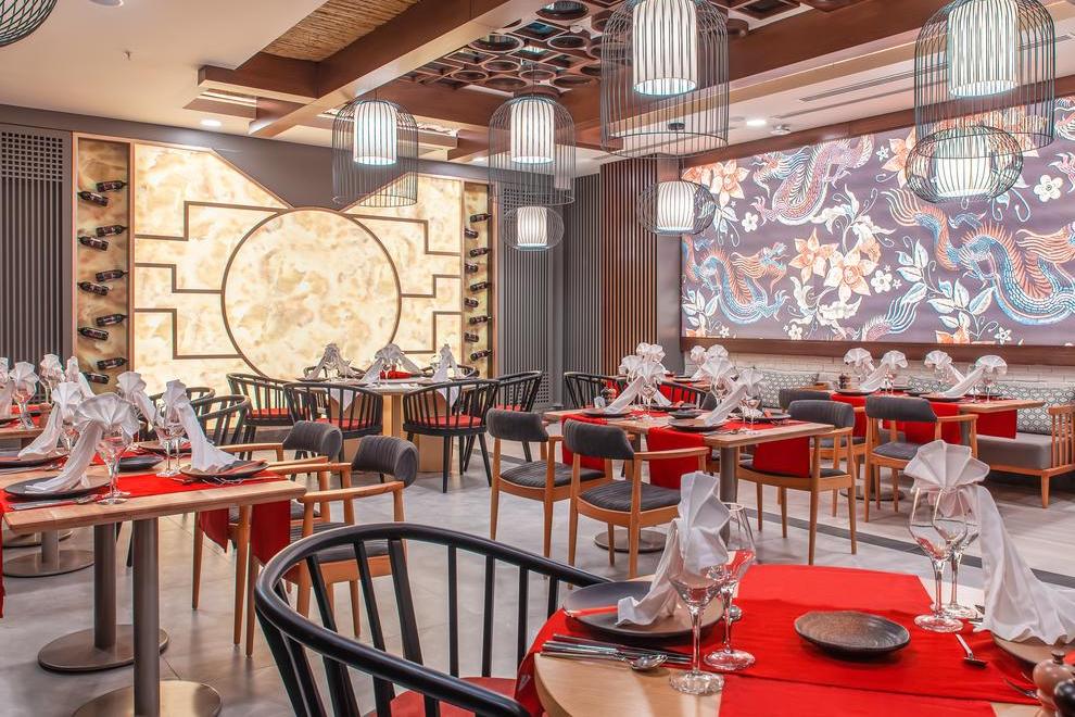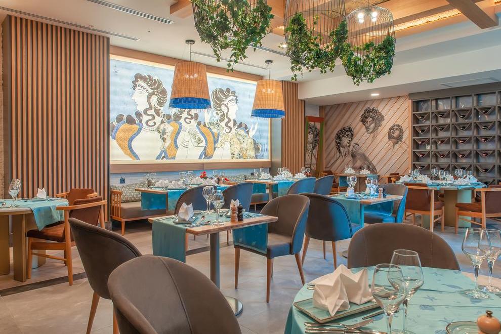 На разположение на гостите са основен ресторант, 2 а`ла карт ресторанта: средиземноморски и китайски и снек ресторант на плажа. Освежаващи напитки и закуски се поднасят в три бара и сладкарница.