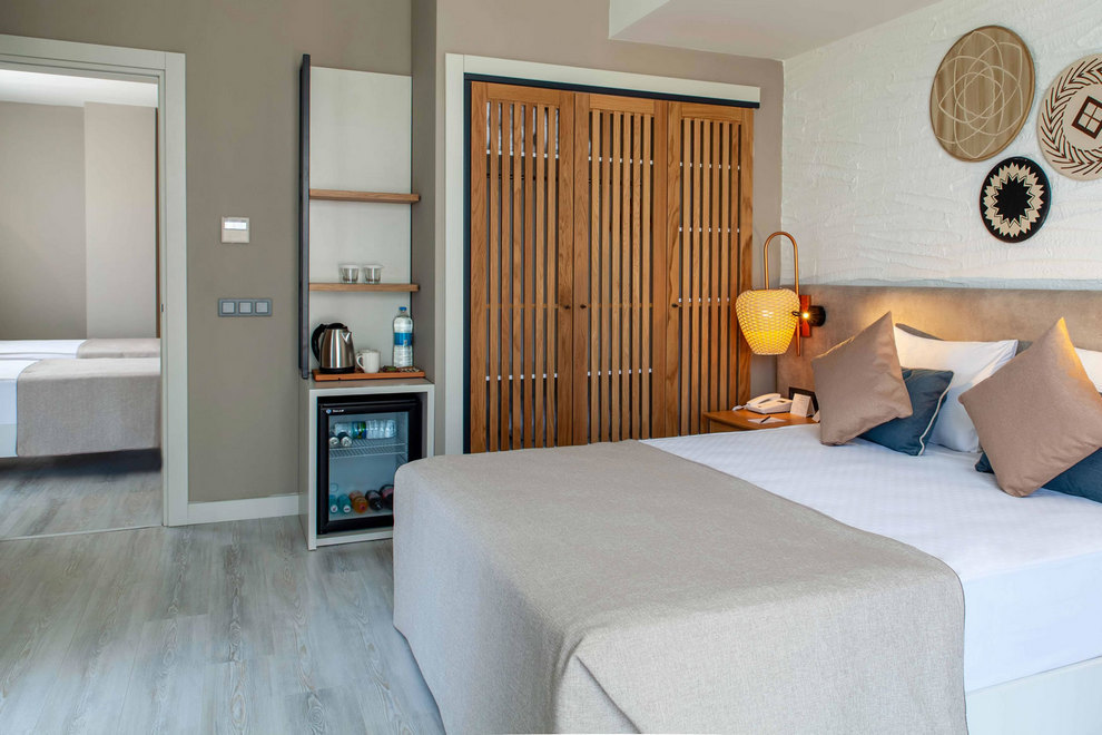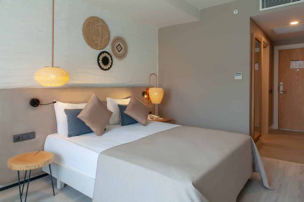 Хотелът посреща гостите си в една 6-етажна сграда, в която са разпределени 232 климатизирани стаи: 118 Standard (28 кв.м), 55 Standard Pool view (с изглед басейн - 28 кв.м), 19 Swim Up (с директен достъп до общ басейн – 28 кв.м), 40 Family Room (2 спални, 1 баня - 37 кв.м). Стаите разполагат с LCD телевизор, телефон, сейф, сет за кафе/чай, минибар, баня с душ, сешоар, балкон, Wi-Fi. Стаите се почистват ежедневно, а спалното бельо се сменя три пъти седмично.