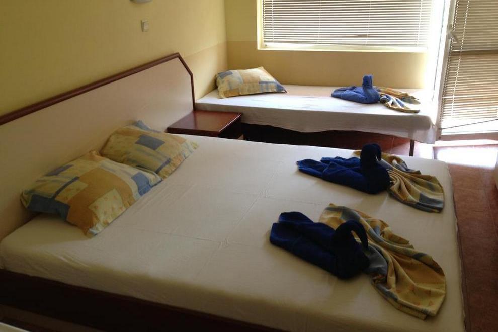 Плажът е само на 100 метра от хотела, който предлага и удобството на сезонен открит басейн.