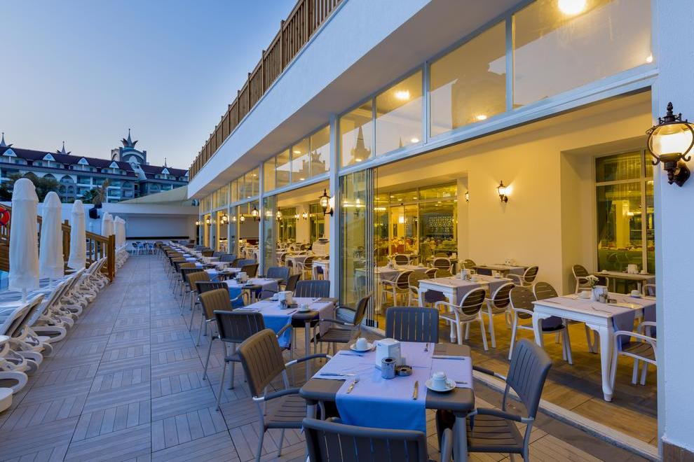 Хотелът има основен ресторант и два а`ла карт ресторанта: турска и международна кухня. Освежаващи напитки се поднасят в 3 бара.