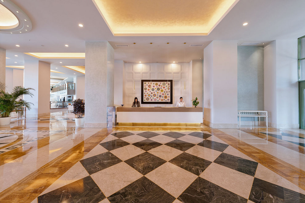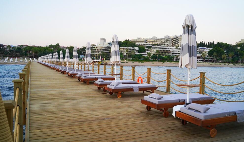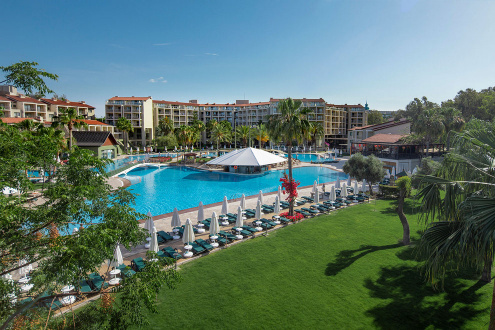 Хотелът има собствен пясъчно-чакълест плаж, дълъг 85 м, със зона само за възрастни. Бар на плажа (безплатно) и дървен кей. На разположение на гостите са 3 открити басейна с прясна вода, площ 1200 кв.м, 600 кв.м (отопляем през април и ноември) и 136 кв.м. 1 закрит отопляем басейн (отворен от 11.01. до 31.03.). 3 водни пързалки (неотопляеми), работно време 10:00-12:00 ч. и 14:00-16:00 ч. На плажа и при басейна чадъри, шезлонги и матраци се ползват безплатно.