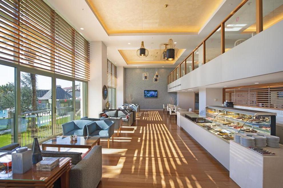 На разположение на гостите са основен ресторант(безлактозна, безглутенова, веган и вегетарианска храна) и 4 а`ла карт ресторанта: Akasya - международна кухня, Mimoza - азиатски ресторант, Petunya - турска кухня, Bonsai ресторант. Освежаващи напитки и закуски се поднасят в 5 бара - лоби бар, бар на плажа, бар при басейна, бар на кея, диско бар.