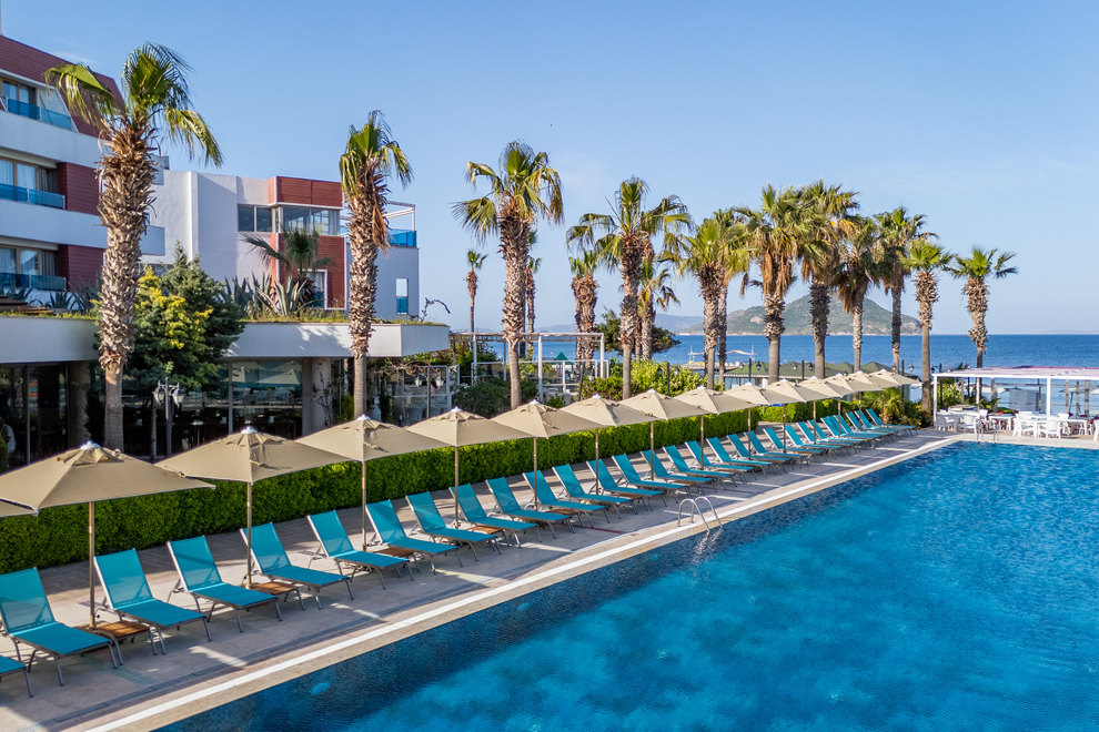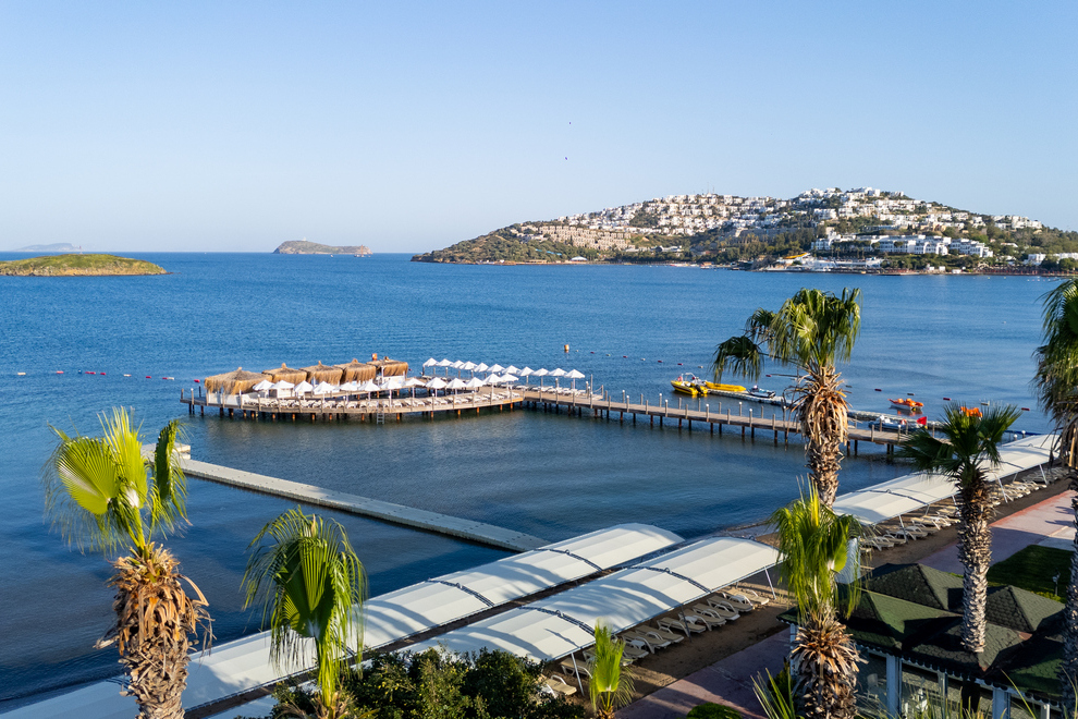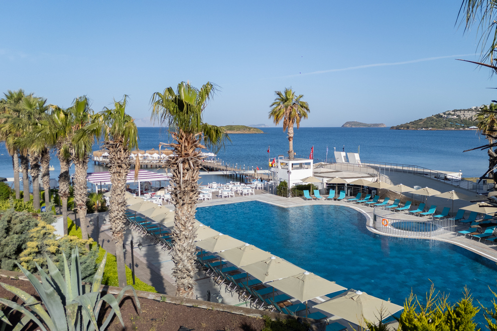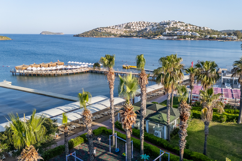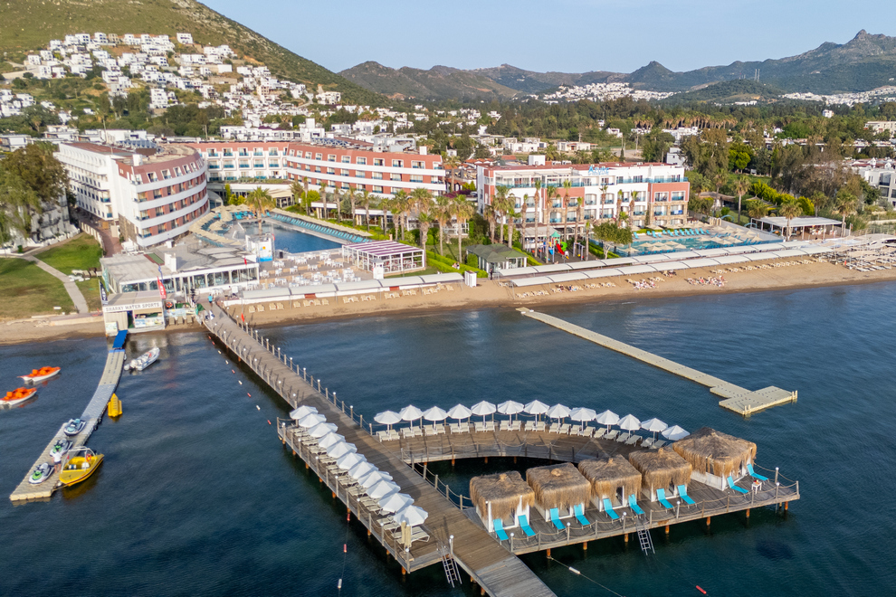 Хотелът е разположен на брега на морето, в района на Тургутрейс. Летище "Милас" отстои на 55 км, центърът на Бодрум се намира на 22 км. Последно е реновиран през 2020 г.