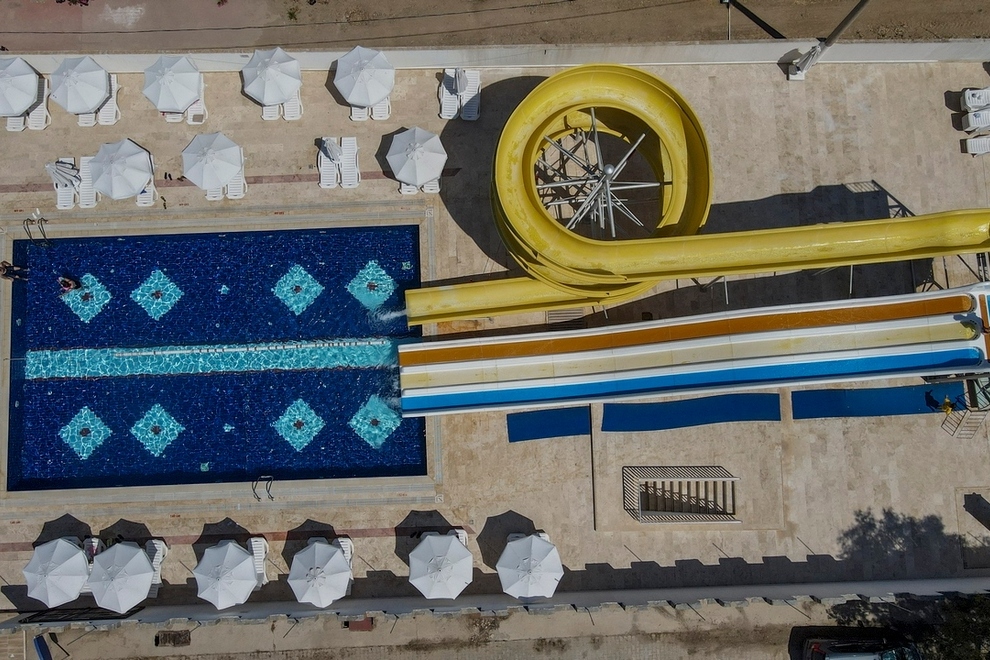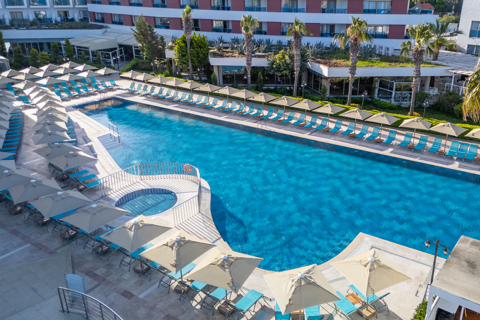Хотелът разполага със собствен 300-метров пясъчен плаж на Егейско море. Има и външен басейн, детски басейн, релакс басейн, 2 вътрешни басейна, 2 водни пързалки. Чадъри, шезлонги и матраци на плажа и при басейна се ползват безплатно.