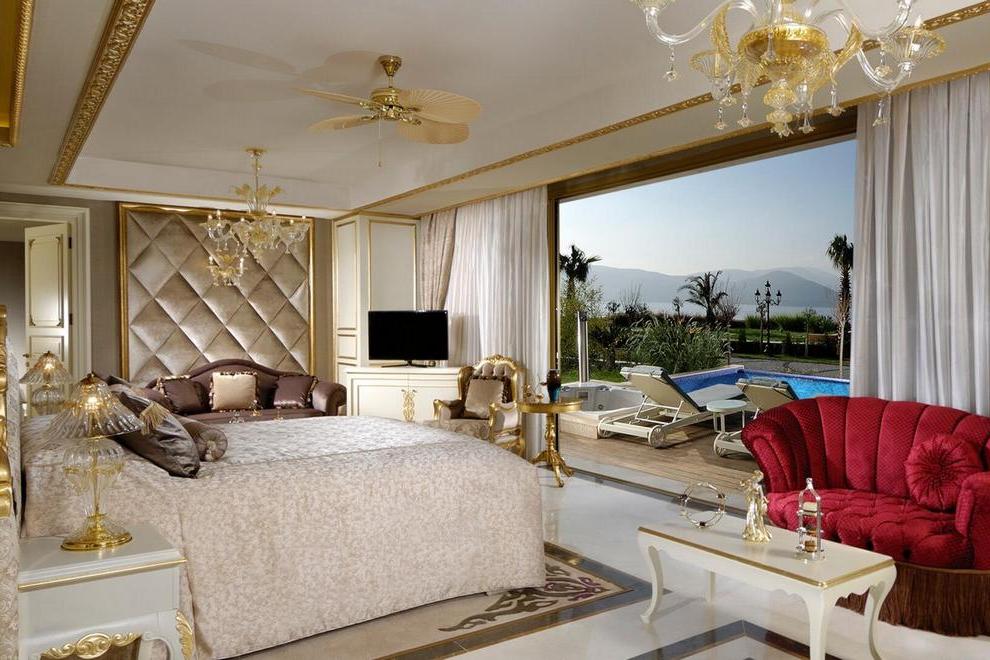 Хотелът посреща гостите си в 134 климатизирани стаи. Видовете стаи са Студио (35 кв.м), Супериор (40 кв.м), Делукс (90 кв.м), Премиум суит (120 кв.м), Гранд суит (145 кв.м), Малдиви суит (110 кв.м)., Малдиви вила (195 кв.м), Делукс вила (245 кв.м), Премиум вила (535 кв.м), Гранд вила( 725 кв.м). Всички стаи имат: King Size легло, IPTV, безжичен телефон, минибар, телевизор с плосък екран, сейф, който побира лаптоп, кафе машина, електрическа кана. Баня с душ, луксозни принадлежности за баня, сешоар, кантар. Осигурен е високоскоростен Wi-F. Балкон или тераса. В Делукс стаите има също джакузи, гардеробна, ютия и дъска за гладене. Суитите и вилите имат джакузи, частен басейн. Стаите се почистват всеки ден, смяна на кърпите - всеки ден, спалното бельо се сменя през ден.