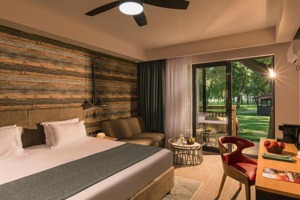 Голяма и добре поддържана градина с много зеленина, безплатен WiFi и частен плаж с безплатни шезлонги. На място има разнообразни спортни съоръжения, басейн с минерална вода, басейн с водни игри и детски басейн.