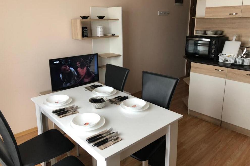 Апартаментът разполага с 1 спалня, телевизор със сателитни канали и напълно оборудвана кухня с микровълнова фурна, хладилник и пералня.