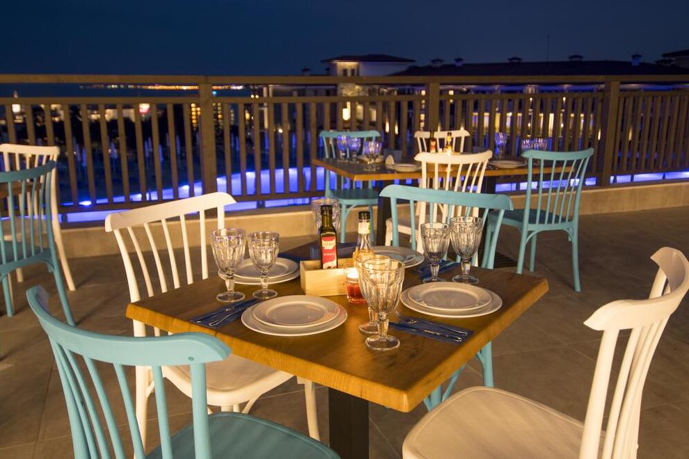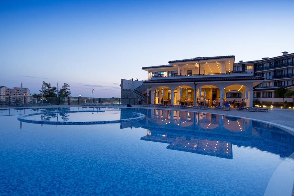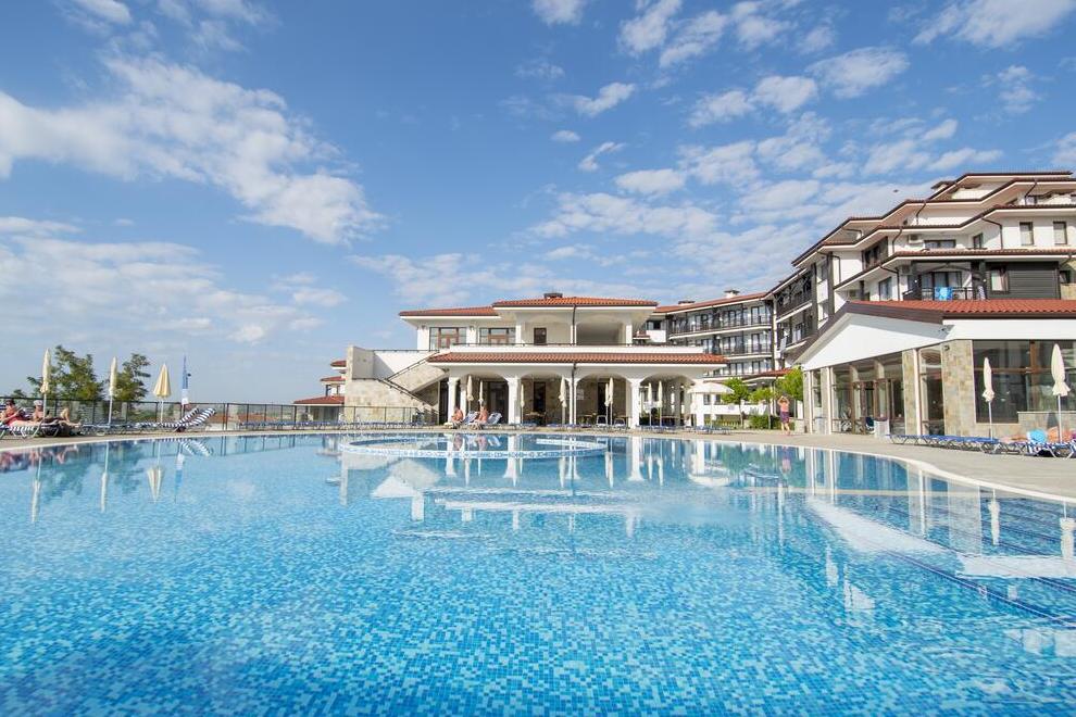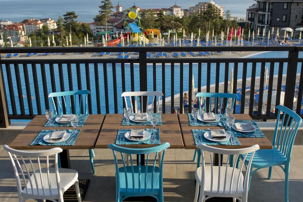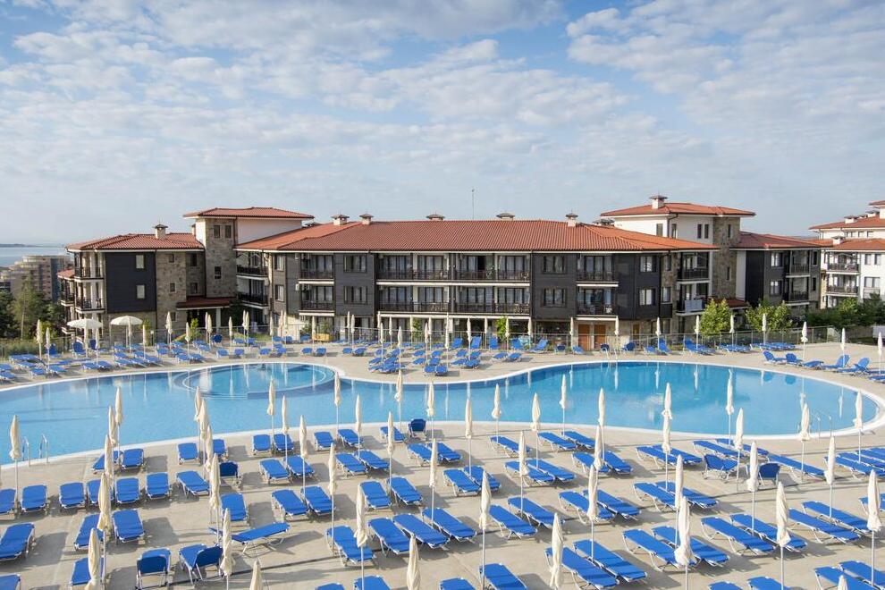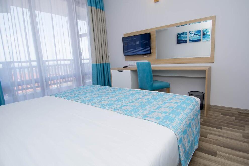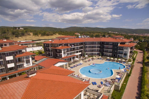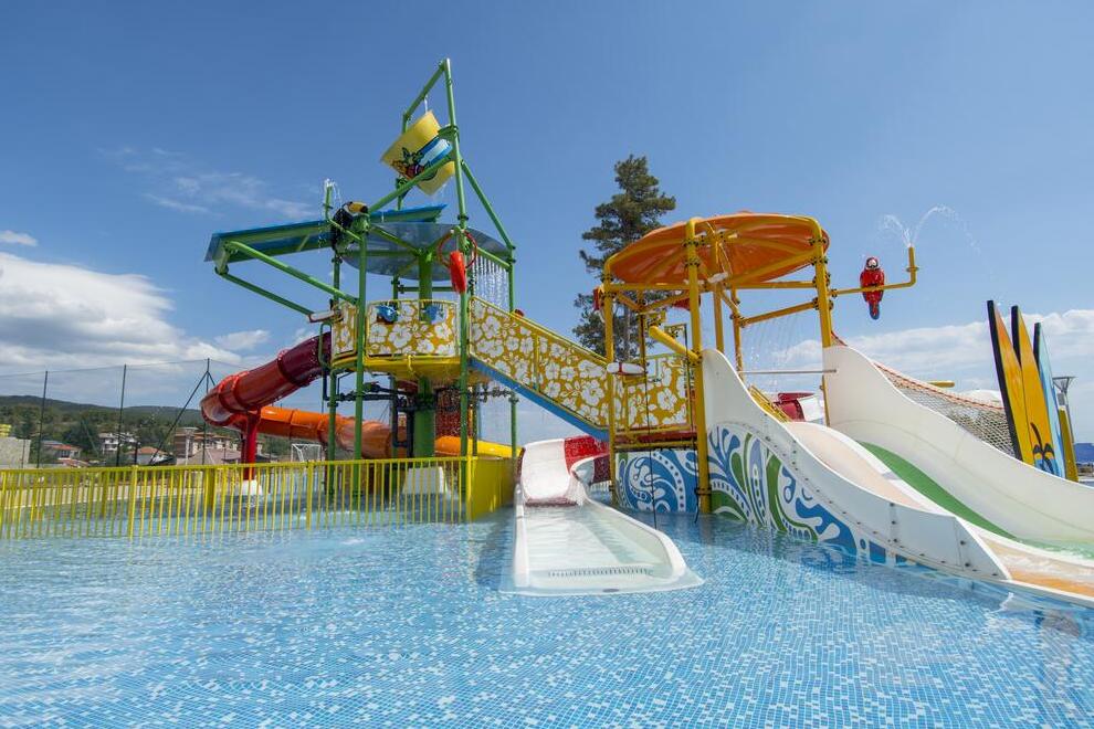 Хтелът има собствен плаж и предлага удобството на открити басейни и тераса за слънчеви бани.
