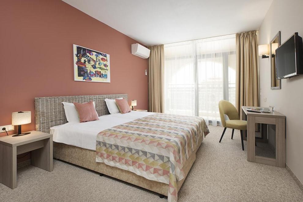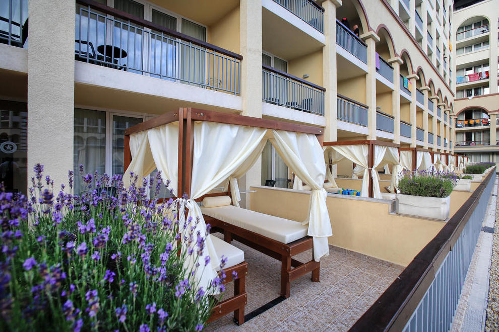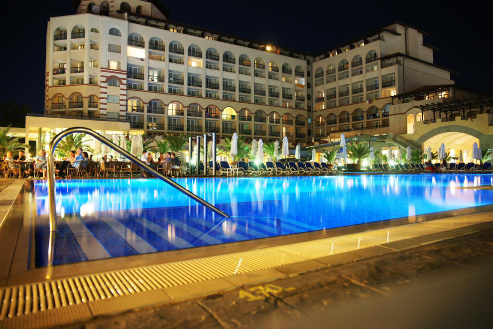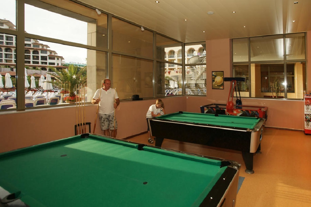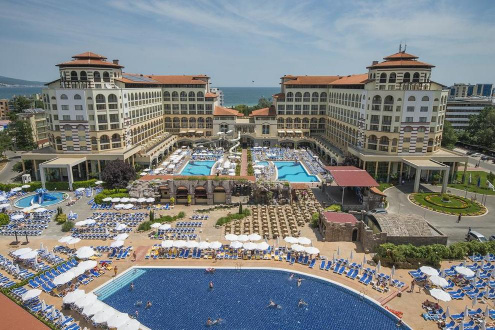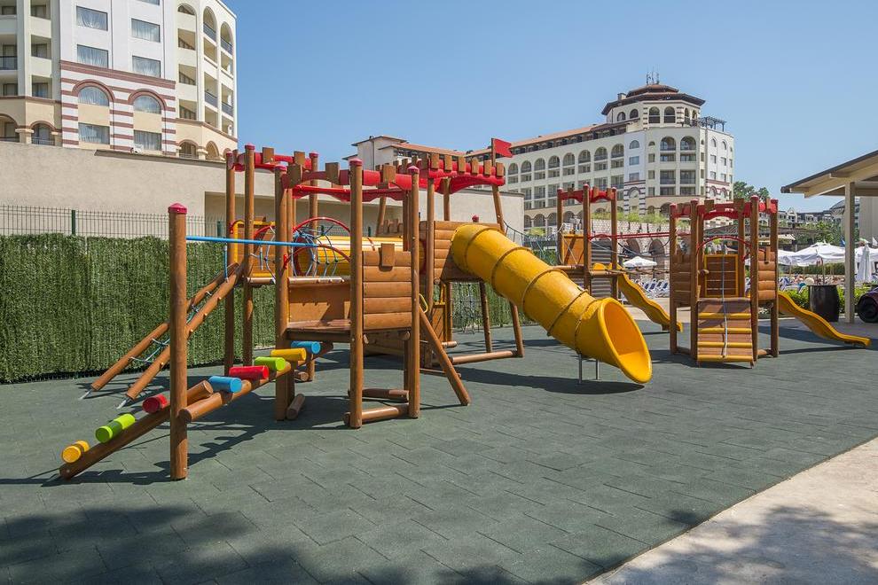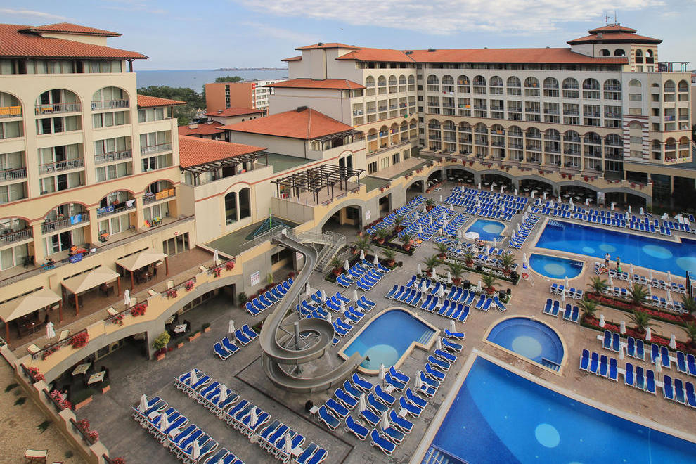 Най-големият отопляем открит плувен басейн на българското крайбрежие, 3 допълнителни басейна, мини аквапарк с 3 водни пързалки, частна зона за гости на плажа с безплатни шезлонги и сенници и други атракции. В цената е включен безплатен достъп до собствен плаж, шезлонги, чадъри, открит плувен басейн и бар на плажа с консумация ол инклузив. Има и тераса за слънчеви бани.