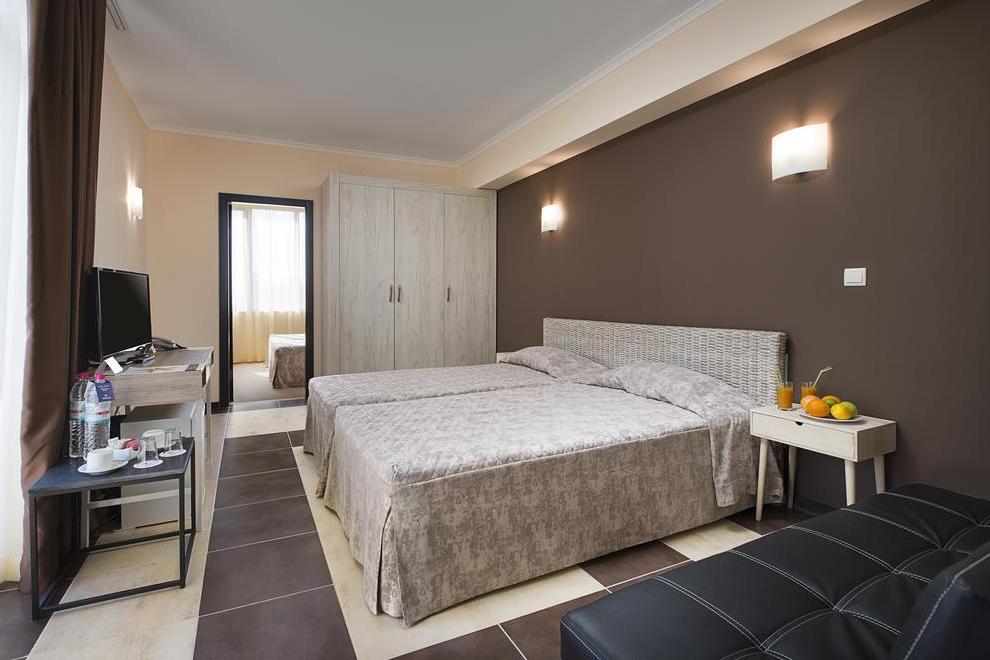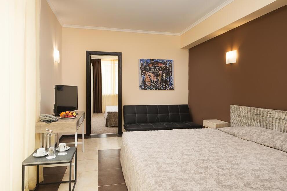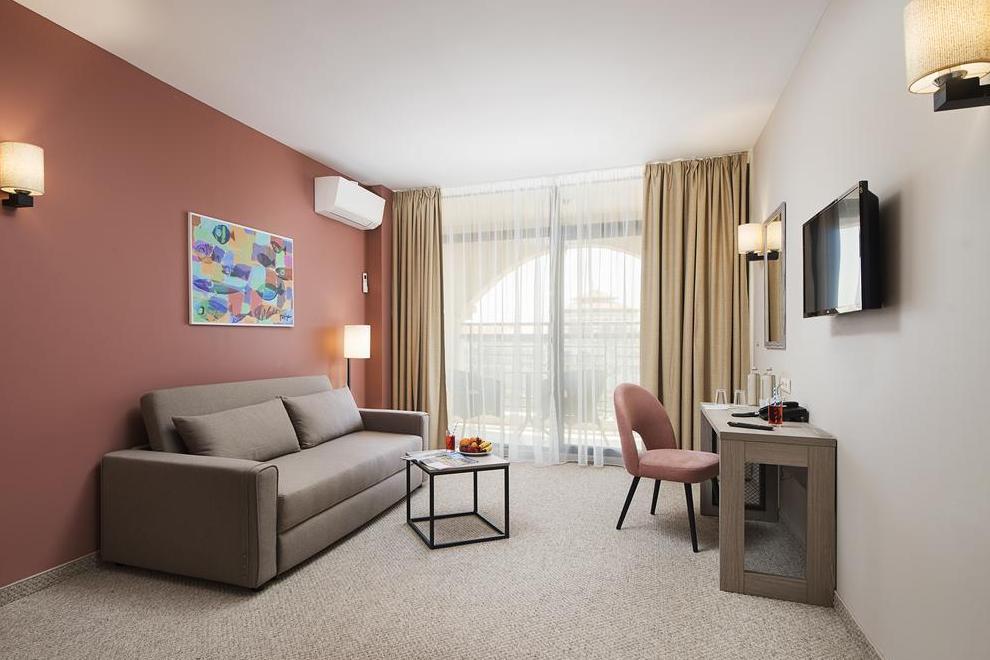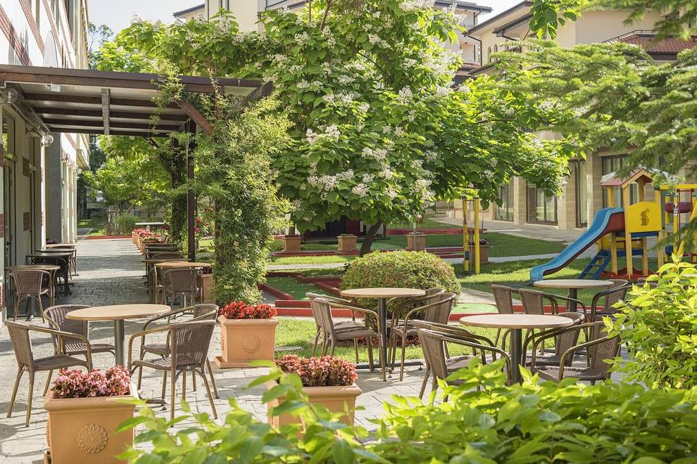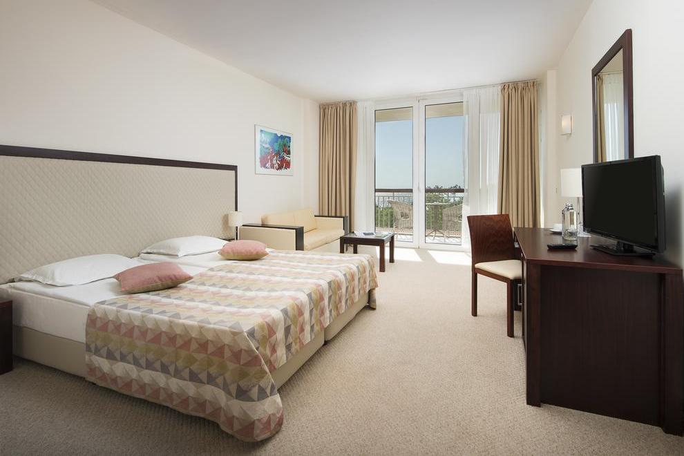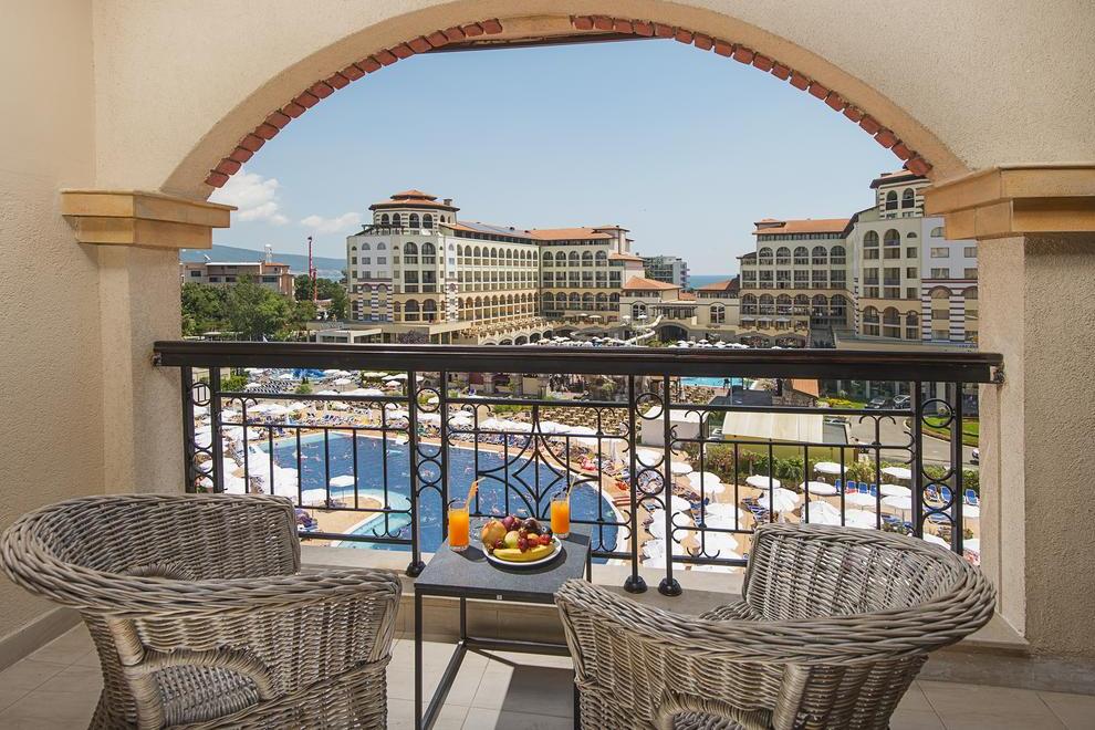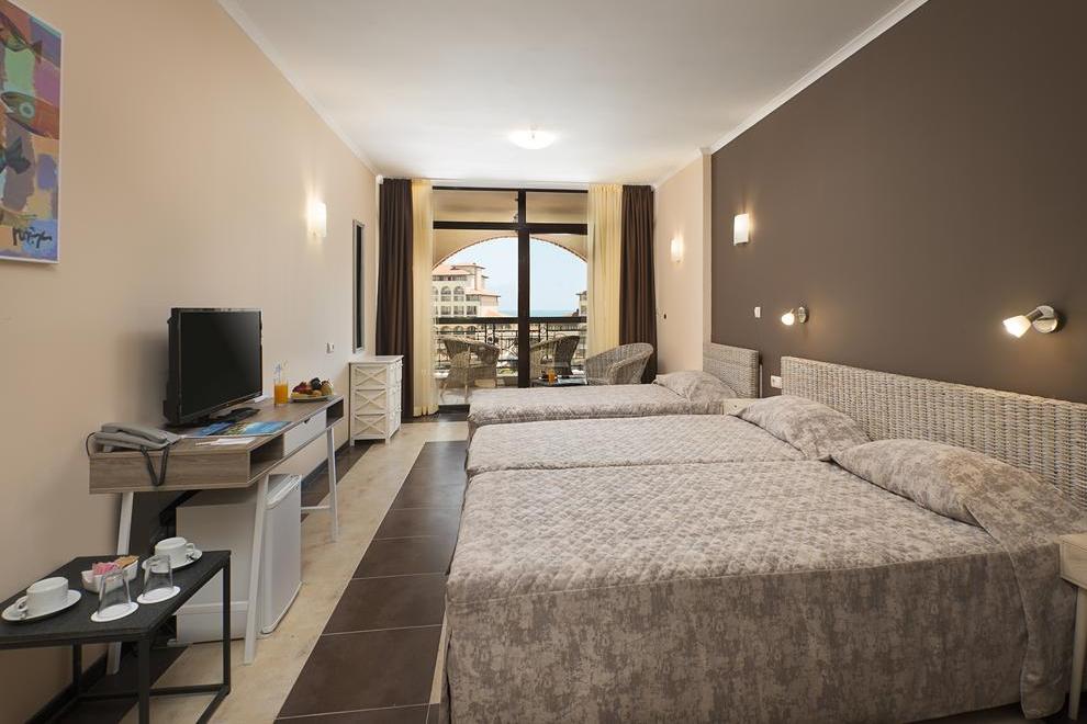 Най-големият отопляем открит плувен басейн на българското крайбрежие, 3 допълнителни басейна, мини аквапарк с 3 водни пързалки, частна зона за гости на плажа с безплатни шезлонги и сенници и други атракции. В цената е включен безплатен достъп до собствен плаж, шезлонги, чадъри, открит плувен басейн и бар на плажа с консумация ол инклузив. Има и тераса за слънчеви бани.