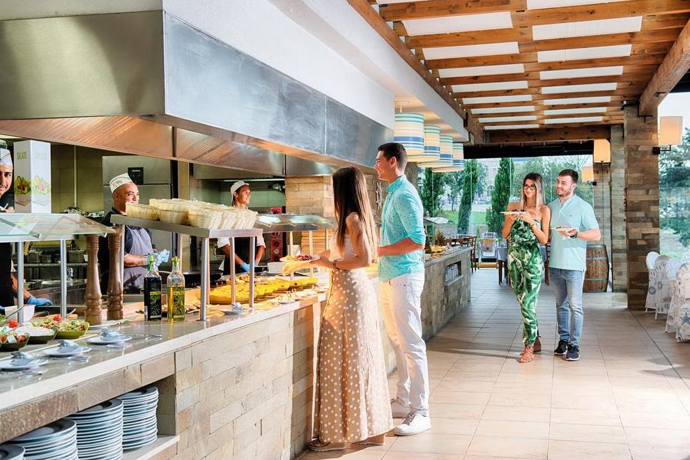 Баровете и ресторантите на хотела разполагат с разнообразно меню. В основния ресторант предлагат закуска на шведска маса, обеди и вечери със станции за готвене на живо, докато тематичните ресторанти предлагат най-доброто от фюжън и средиземноморска кухня, както и месо на скара. По всяко време на деня снек-барът, плажният бар или някой от другите барове предлагат леки закуски.