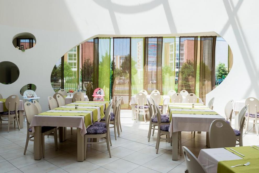 Основният бюфет ресторант сервира вкусни ястия, организират се тематични вечери с български, азиатски и италиански ястия. Има и тераса за вечеря на открито. Намира се на приземния етаж, от лявата страна от главния вход. Закуски и леки хапки като хот дог и пица се предлагат в менюто на бара на басейна. Специални напитки и коктейли се предлагат в в лоби бара, до рецепцията. В Спортния бар гостите могат да гледат любимите си игри, мачове или състезания по формула 1, докато се наслаждават на свежа напитка.