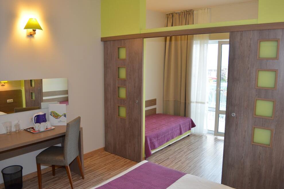 Стандартните двойни стаи са разположени в южното крило. С площ от 28 кв.м и балкон те предлагат спокойно настаняване за гостите. Всяка стандартна двойна стая има минибар, плазмен телевизор, сателитно и музикално предаване, безплатен безжичен, телефон с директна линия (2 телефона в банята и стаята), индивидуален климатик, сейф, ламиниран под, баня с душ кабина, грим огледало и сешоар. Семейните стаи са идеалният избор за семейства, пътуващи с децата си. С площ от 33 кв.м стаите са разделени от плъзгаща се врата. Семейните стаи се предлагат с легло Super King и две единични легла, баня с душ кабина, изглед към аквапарк. Семейните апартаменти са с площ 60 кв.м и имат една спалня и една всекидневна. Този семеен апартамент се състои от две стаи, разделени от врата. Основната спалня има легло Super King и баня, а холът разполага с кът за сядане и отделна тоалетна. Family Suites разполага с минибар и плазмен телевизор в основната спалня и хол. Сателит, безплатна безжична интернет връзка, телефон с директна линия в банята и стаята, централен климатик, сейф, балкон, ламиниран под, огледало за грим и сешоар.