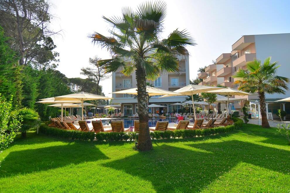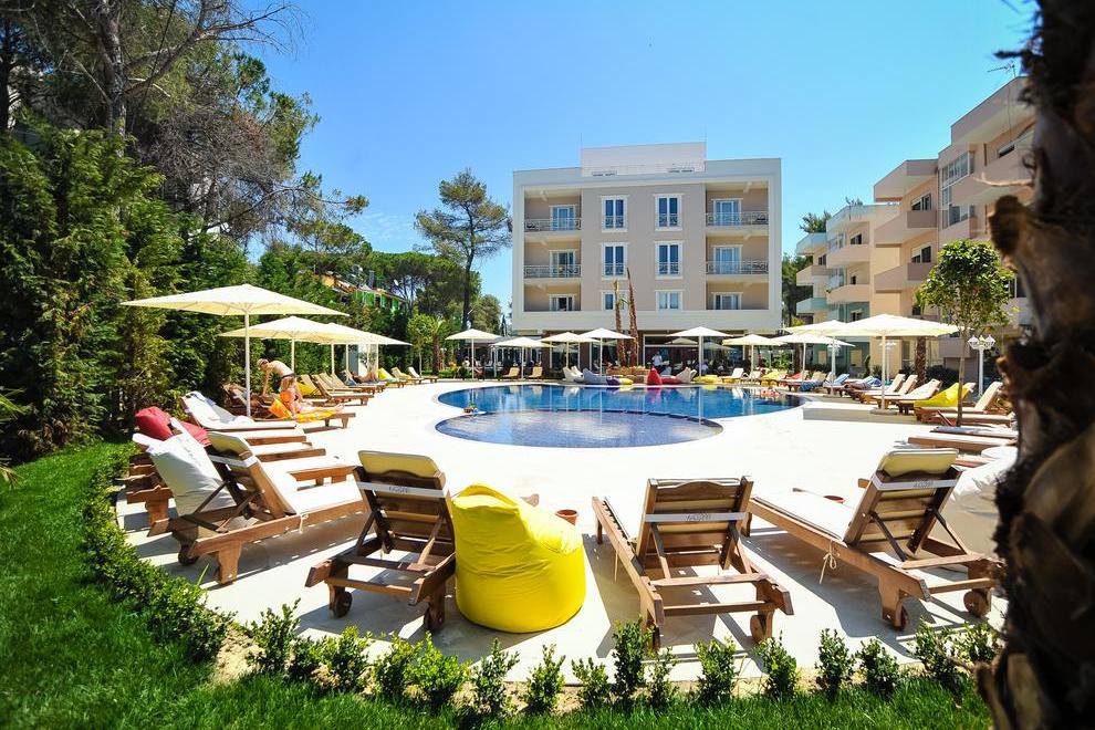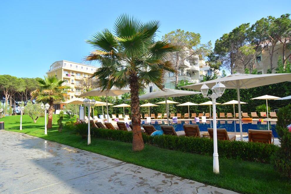 Ресторантът предлага закуска на шведска маса. На гостите на полупансион се сервира вечеря в основния ресторант под формата на меню от 3 ястия, сервирано на масата. Веднъж седмично (ако времето позволява) в главния ресторант се провежда барбекю вечер, предлагаща пет вида месо, плюс сардини на скара, сервирани на блок маса. Друг бюфет предлага богат избор от салати, албански дипове и гарнитури. Предлагайки поръчкови коктейли, кафе и качествено вино, лоби барът е нов вид място за събиране както на чуждестранни гости, така и на местните жители и предлага безплатен Wi-Fi, както и интимни зони за сядане с дивани. Работно време от 08:00 - 23:00 ч. Прохладни напитки и вкусни сандвичи се предлагат всеки ден в Sunset Beach Bar. Работно време: неделя – четвъртък от 09:00 - 23:00 ч., петък събота от 09:00 - 13:00 ч.