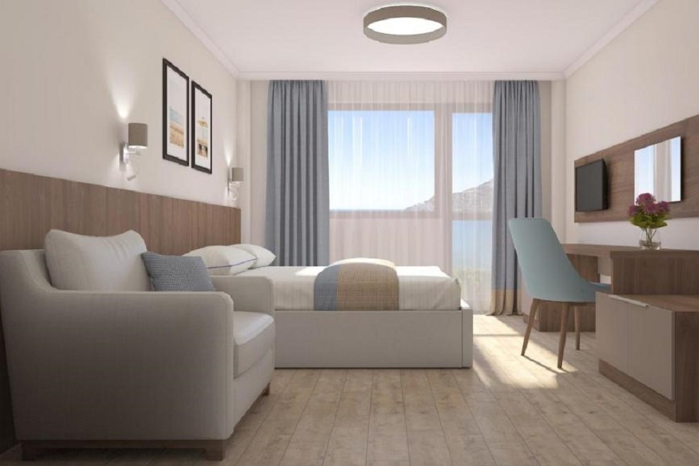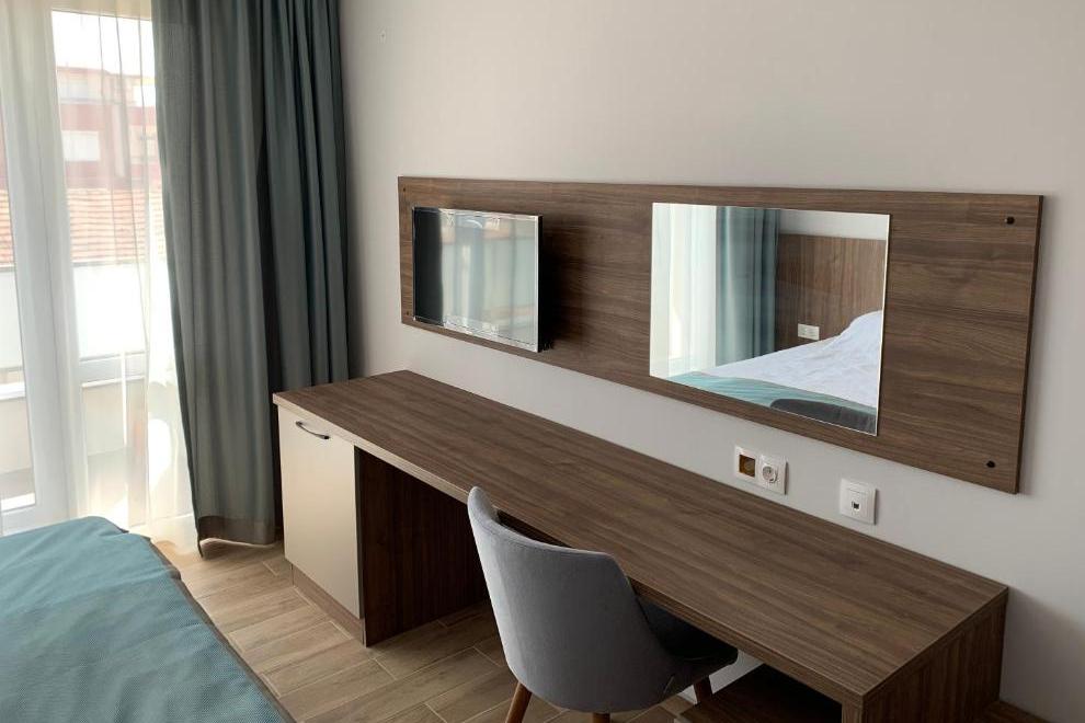 Помещенията в хотела са 76, от които 63 сa 2 + 1, 10 са 2+0 и 3 фамилни стаи с 4 редовни легла. Всички те разполагат с две легла, разтегателен фотьойл, телефон, сателитна телевизия, бюро, гардероб, спално бельо, сушилник за дрехи, климатик, балкон и баня с душ, тоалетна и тоалетни принадлежности, хавлии. ДВОЙНА СТАЯ 2+1 / 2 + 0: Приблизителна площ от 25 кв.м. Стаите разполагат с две редовни легла, допълнителното легло е разтегателен фотьойл, цифрова телевизия, мини бар, бюро, гардероб, спално бельо, сушилник за дрехи, климатик, баня с душ, тоалетна и тоалетни принадлежности, хавлии, имат балкон. Максимално настаняване 2 възрастни и 1 дете или 3 възрастни. ФАМИЛНИ СТАИ 4+1: Приблизителна площ от 50 кв.м. Фамилните стаи се състоят от две отделни стаи, като във всяка има двойно легло, разполагат със цифрова телевизия, мини бар, бюро, гардероб, спално бельо, сушилник за дрехи, климатик, баня с душ, тоалетна и тоалетни принадлежности, хавлии, санитарен възел. Максимално настаняване на 5 възрастни. Бебешки кошари се предоставят безплатно и с предварителна заявка.