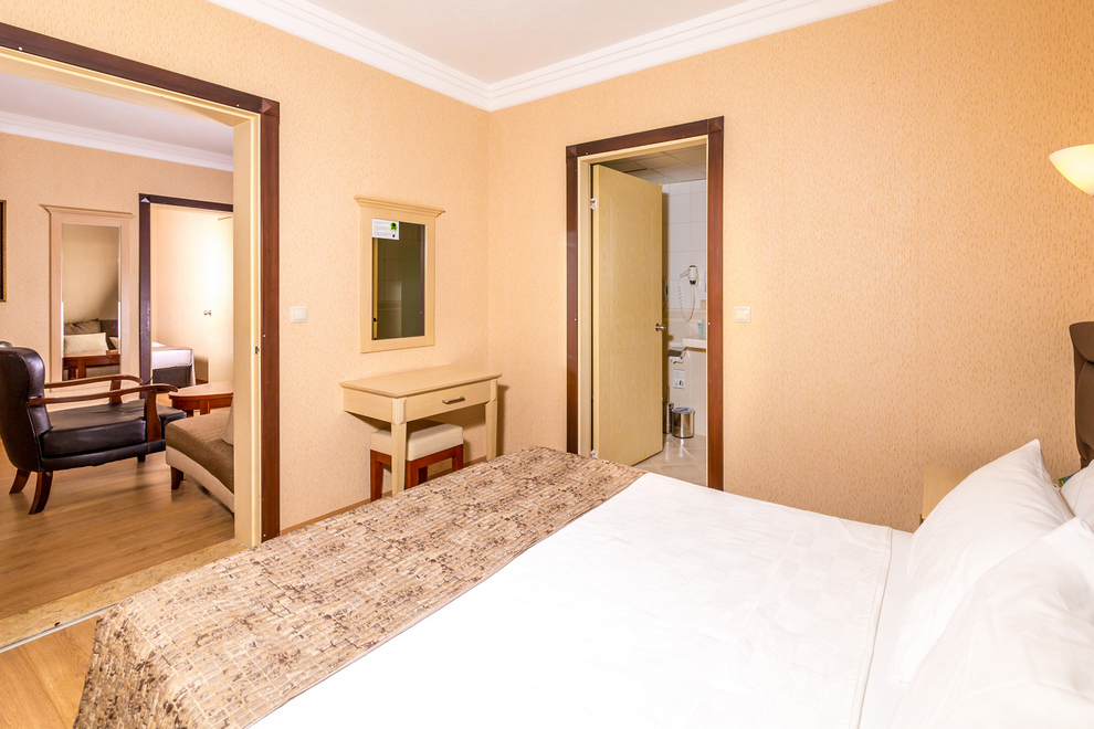 Хотелът посреща гостите си в 74 климатизирани стаи. Всички те имат телевизор, телефон, сет за чай/кафе, минибар, сейф, баня с душ, сешоар, балкон. Стаите се почистват ежедневно, смяна на кърпите - всуки ден, смяна на спалното бельо - три пъти седмично.