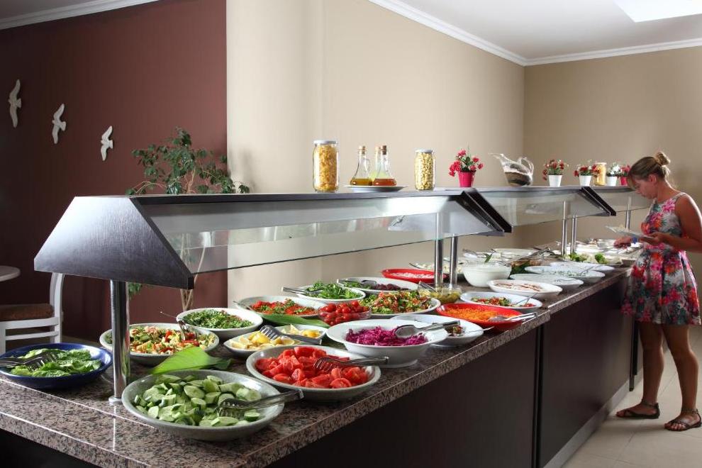 Всяка сутрин се сервира закуска на шведска маса. На двата бара до басейна гостите могат да се разхладят и ободрят с напитка и да хапнат лека закуска през целия ден. Ресторантът на апартхотел Summer Garden разполага с места за сядане на открито и на закрито.Концепция All Inclusive: Закуска (07:30 – 10:00 ч.), Обяд (12:30 – 14:00), Вечеря (19:30 – 21:30). Чаен сервиз (17:00 – 18:00), кафе-пауза (торта, бисквити и палачинки). Ресторант Бар ( 11:00 – 23:00 ч.). Местните алкохолни и безалкохолни напитки са безплатни (марки се определят от обекта). Чуждестранни марки, бутилка и затворени напитки са срещу заплащане (бира, вино, вода и др.). Прясно изцедени плодови сокове и турско кафе са срещу заплащане.